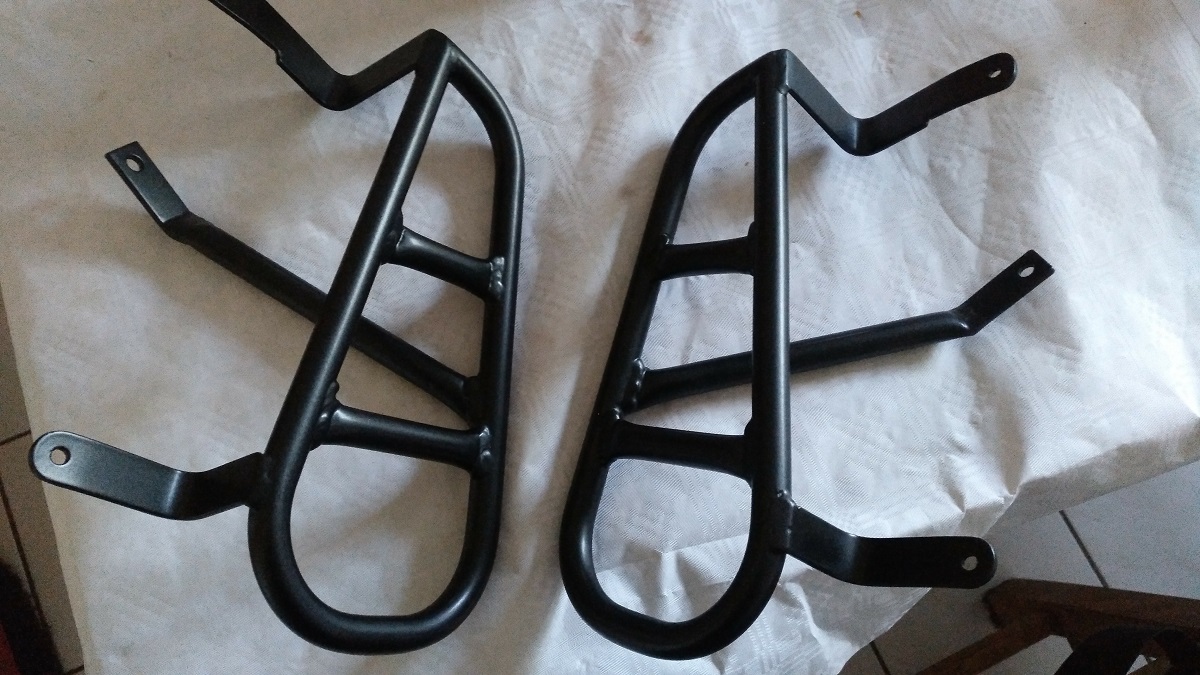 Ich habe mir an den vorderen, original Befestigungspunkten einfach jeweils eine Schraube eingedreht, über das rausstehende Gewinde der Schraube nen Schrumpfschlauch drübergezogen.