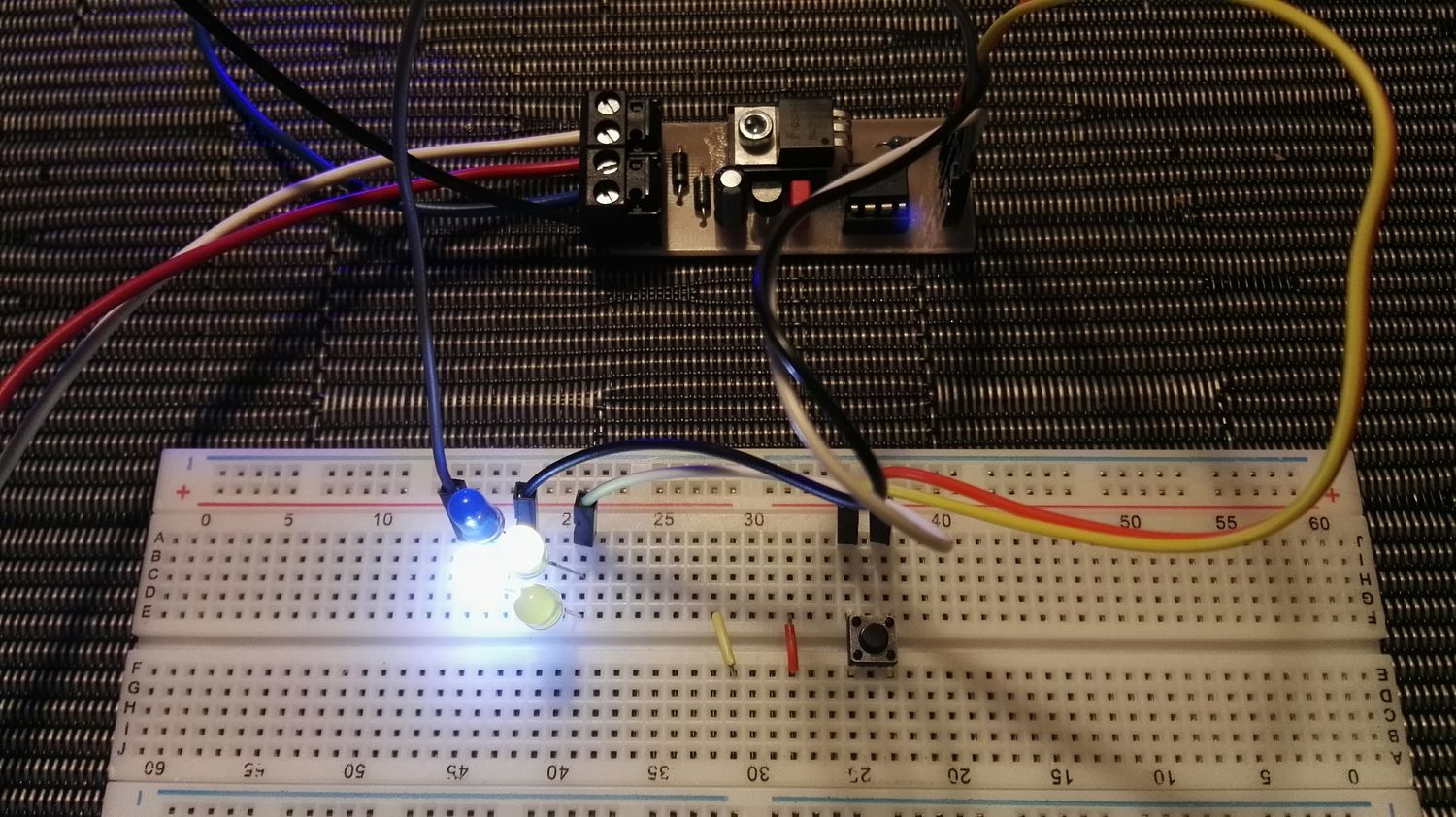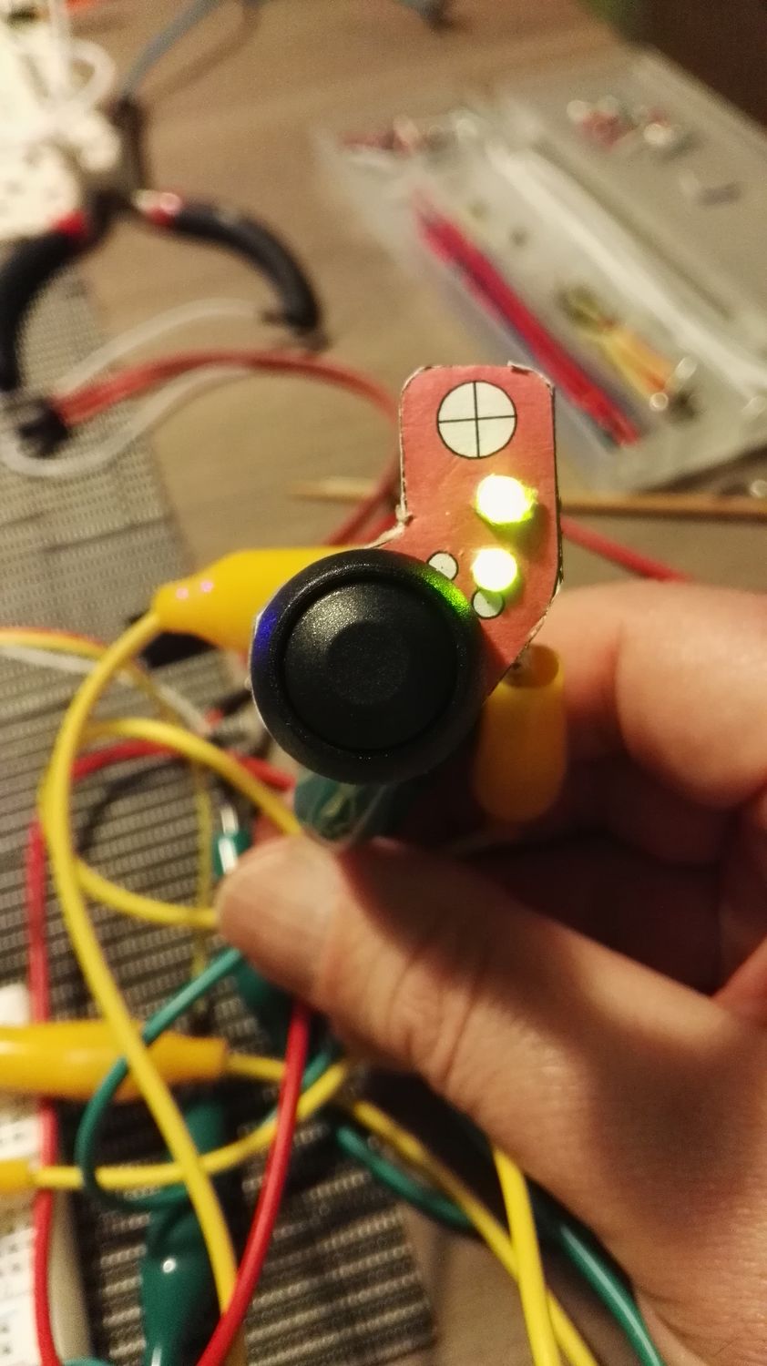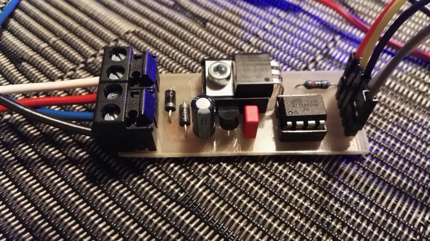 Die Steuerung durch einen Taster und zwei LEDs werde ich an der Schraube des Linken Spiegels befestigen.
