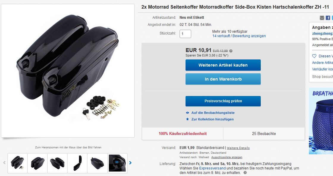 Für mich spielt das aber keine Rolle da die Koffer bei mir nicht dicht sein müssen. Bin ja Schön-Wetter-Fahrer.