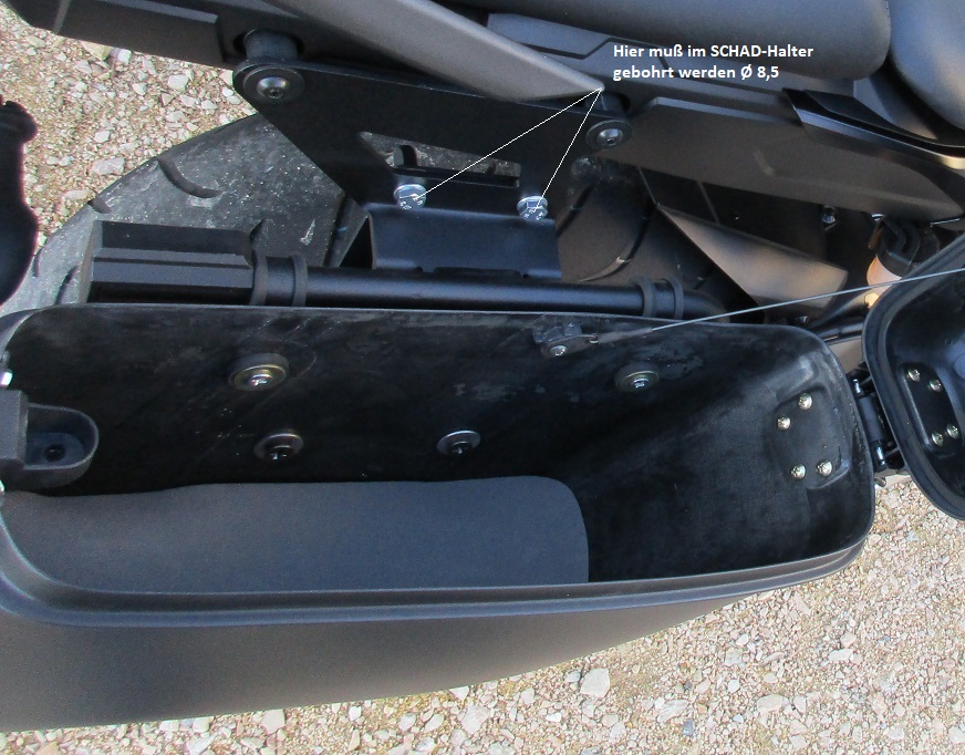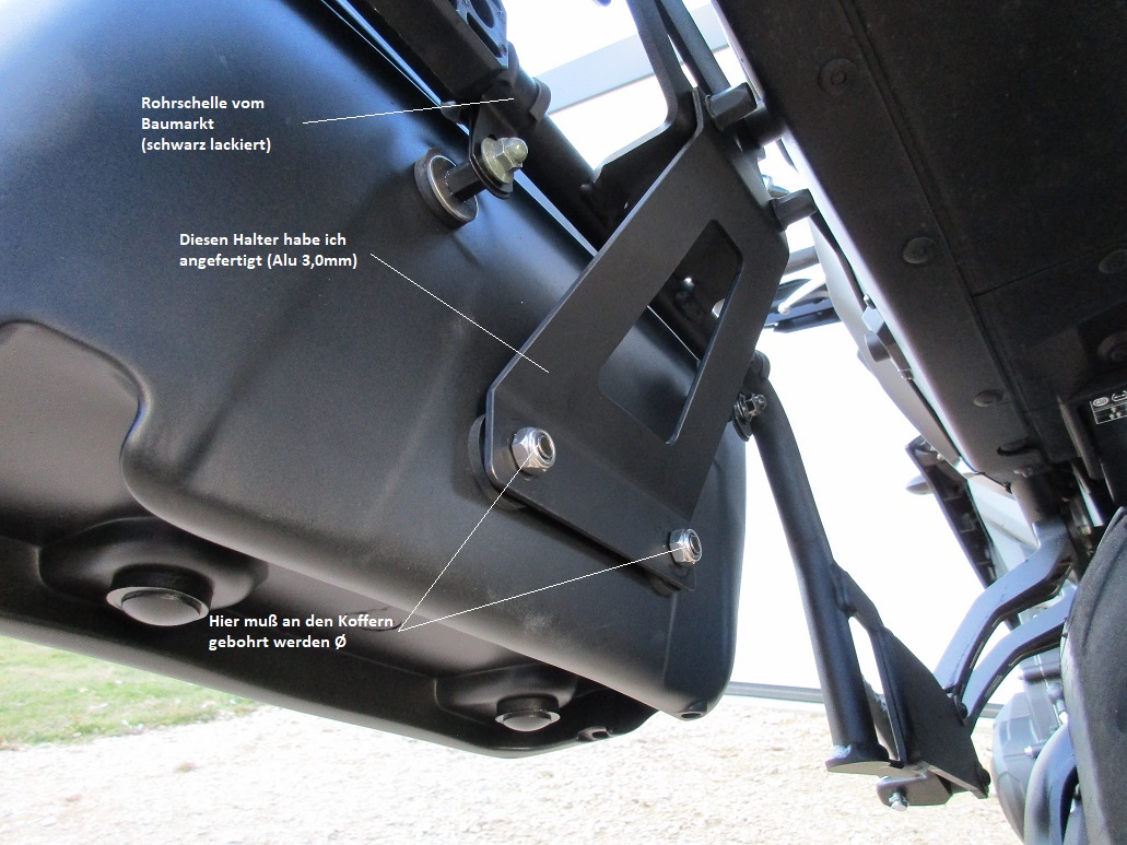 kurzen von YAMAHA dran. Und ich glaube das da die Blinker im Weg sind. Ansonsten wären die Koffer je Seite mit vier Schrauben befestigt. Der SHAD-Kofferhalter bleibt dann dran.