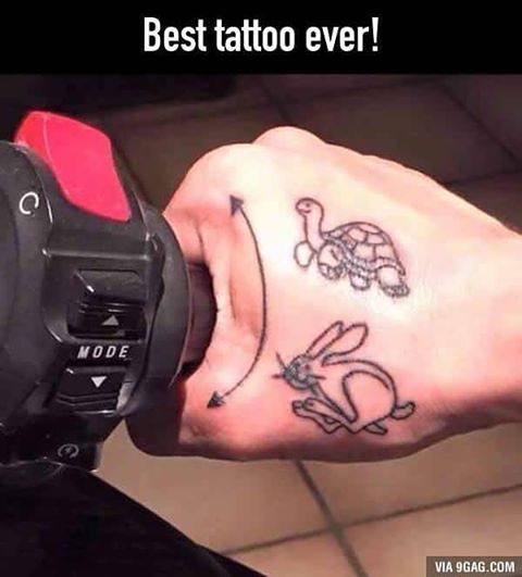 #2 Unterhalten sich ein Gold-Wing und ein Harley-Fahrer. Beide schwärmen vom Fahrfeeling ihrer Böcke und den tollen Technikdetails. Sagt der Gold Wing-Fahrer. „Und wenn ich dieses Knöpfchen drücke, ermittelt das GPS via Satellit sofort meine genaue Position, rechnet augenblicklich die Fahrzeit bis zum eingegebenen Zielort aus, fragt ab, ob ich die schnellste oder landschaftlich schönste Strecke fahren möchte, checkt die Staugefahr auf der Route und zeigt die Ergebnisse anschliessend übersichtlich im Cockpit an.“ „Hmmm“, antwortet der Harley-Fahrer, „das kann meine nicht. Aber wenn ich hier draufdrücke, bekomme ich eine zuverlässige Wettervorhersage. Und dann kann ich entscheiden, ob ich das Bike offen auf dem Anhänger transportieren kann oder bei Regenwahrscheinlichkeit doch besser im geschlossenen Transporter.“