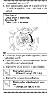 Kette nachspannen bei jedem Reifenwechsel so alle 4.500 bis 5.500 km, je nach Reifen.