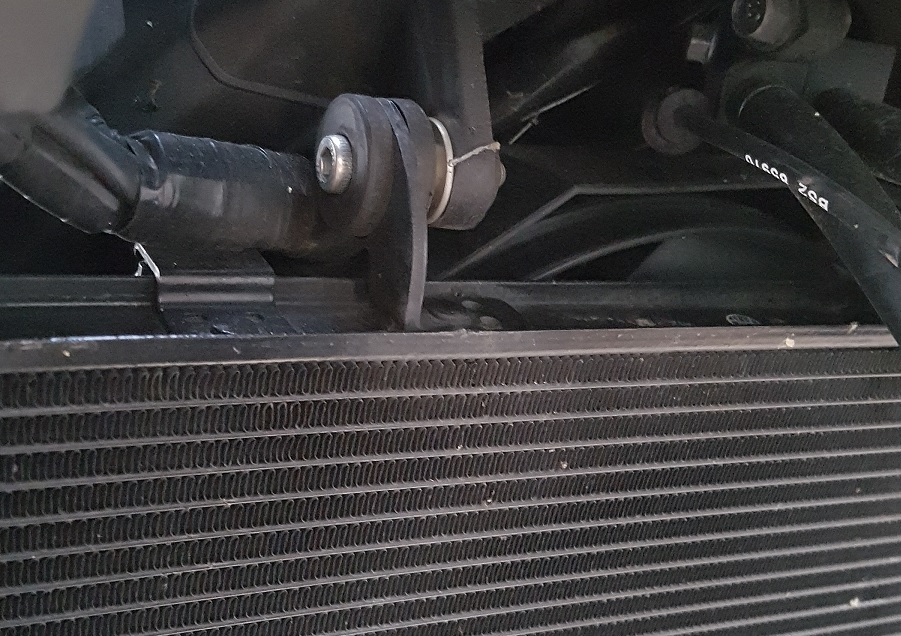 #2 Wenn Du die beiden Schrauben oben links und rechts löst, kannst Du den Kühler etwas nach vorne klappen. Unten in der Mitte ist noch eine dritte Schraube, die den Kühler dann im Drehpunkt fixiert. Ich habe die Schrauben oben z.B. schon mal gelöst, um besser die Zündkerzen wechseln zu können. Ich hatte dadurch etwas mehr Platz zum Arbeiten.