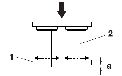 Die Kettenlasche muss so aufgepresst werden, dass die zu vernietenden Bolzen um einen best. Längenwert herausstehen.
