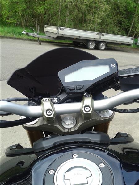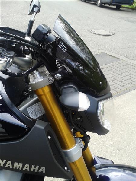 Ein Wort zur „optionalen“ originalen Windschutzscheibchen für die MT. Ist ja ganz nett und verdeckt auch den Zündschlüssel und ein paar Plastikteile, die man dann später nicht vom Fliegendreck „befreien“ muss. Aber das Mäusekino steht immer noch im Freien! Hätte man da die 160.- teure Originalscheibe nicht „etwas“ grösser machen können ? Der getönte Fliegenfänger von Puig ist etwas grösser, - aber nicht zu gross, günstiger als die original Scheibe von Yamaha, einfach zu montieren und passt perfekt: