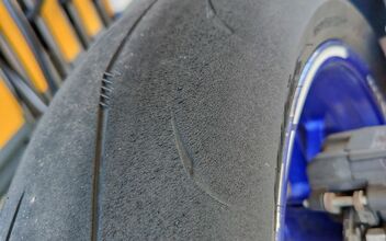 #100 Ich hab heute den EV Vorderreifen runter. Seitlich war er schon auf 1mm, mittig hätte er noch ganze 2,8-3mm gehabt.