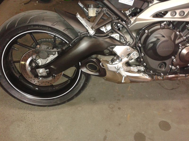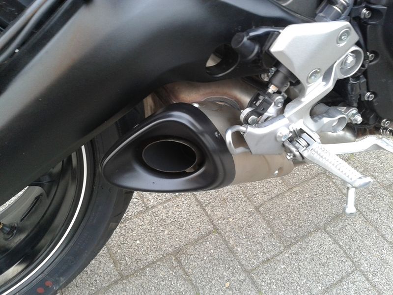 Nach dem Reifenwechsel wurde übrigens noch die Edelstahlblende des Hitzeschild am Auspuff passend zur Schwinge gefärbt
