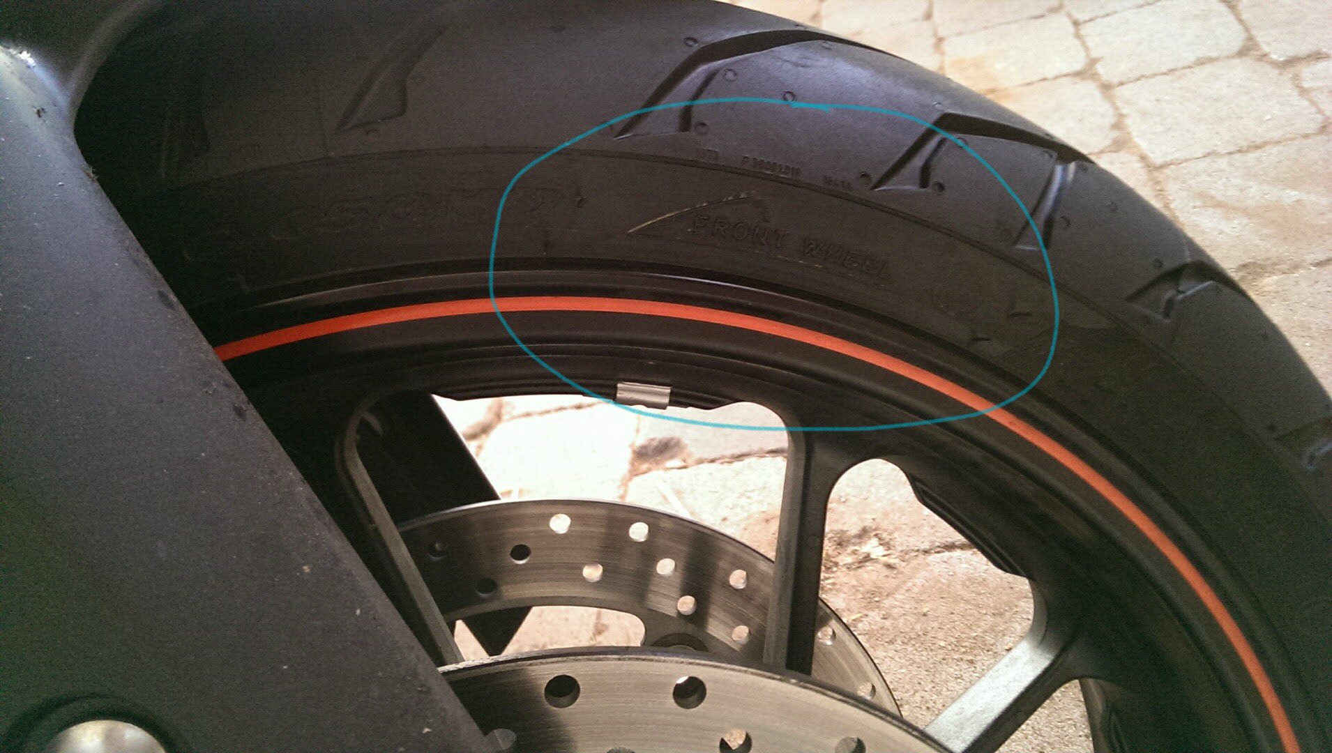 Sieht für mich verkehrt rum aus, wenn das Foto von vorne vom Vorderreifen ist. Könnte natürlich auch der Vorderreifen von hinten geknipst sein, dann wärs rischtig! So muss er hinten drauf montiert sein… http://mt09.de/forum/gallery/i…?album_id=69&image_id=465 ergo muss das Profil des Vorderreifens entgegenläufig montiert sein.
