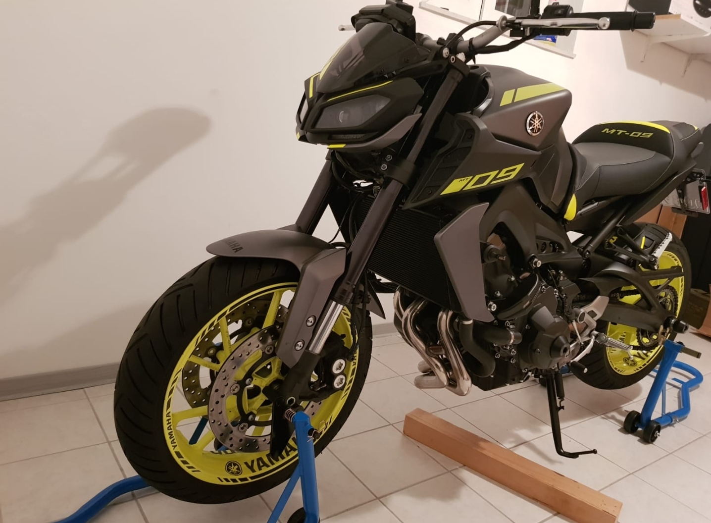 und vor dem Aufkleben nochmal alles mit Wasser und Seife geputzt.Das Felgenbett bietet die eine oder andere Herausforderung, da die kleinen Pünktchen des YAMAHA Logos echt besch§#!en zu übertragen sind.