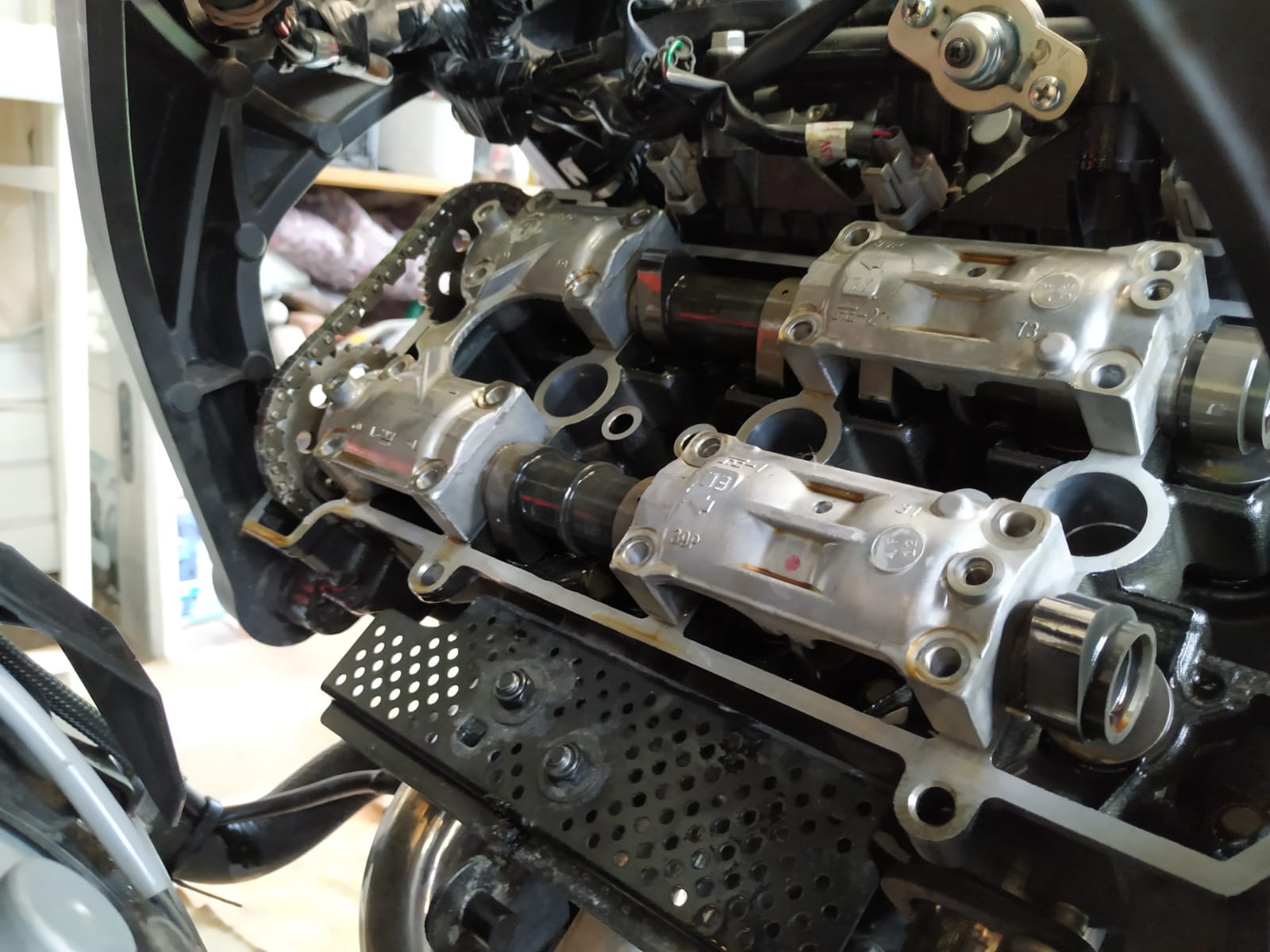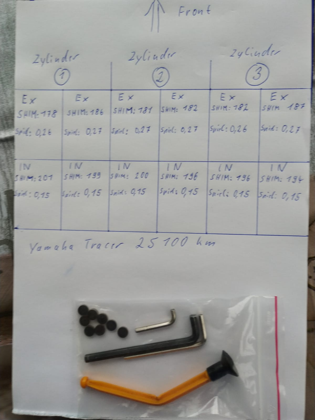 Ich habe alle Tassenstößel gezogen um zu notieren welche Shims sich unter den Tassenstößeln befinden. Kann man machen, muß man nicht machen.