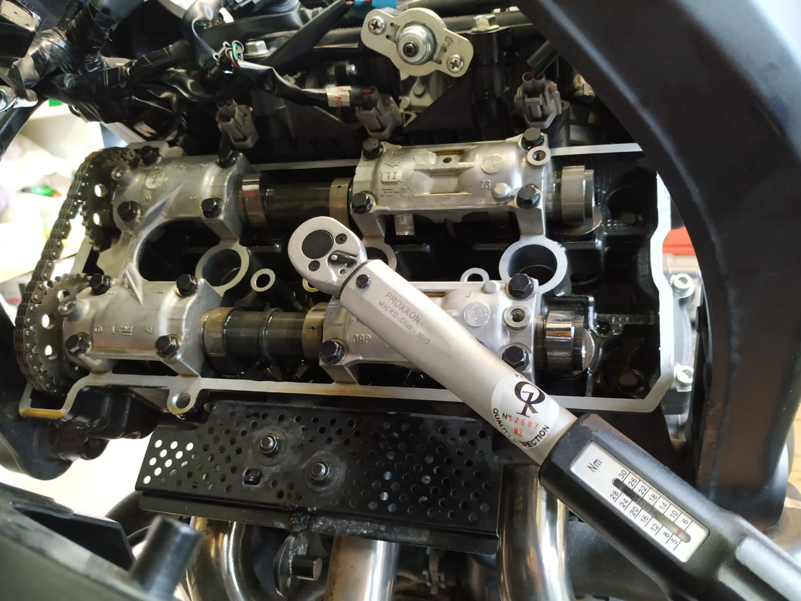 Motor ein paarmal gegen den Uhrzeigersinn drehen, nochmals Steuerzeiten und Ventilspiel überprüfen!