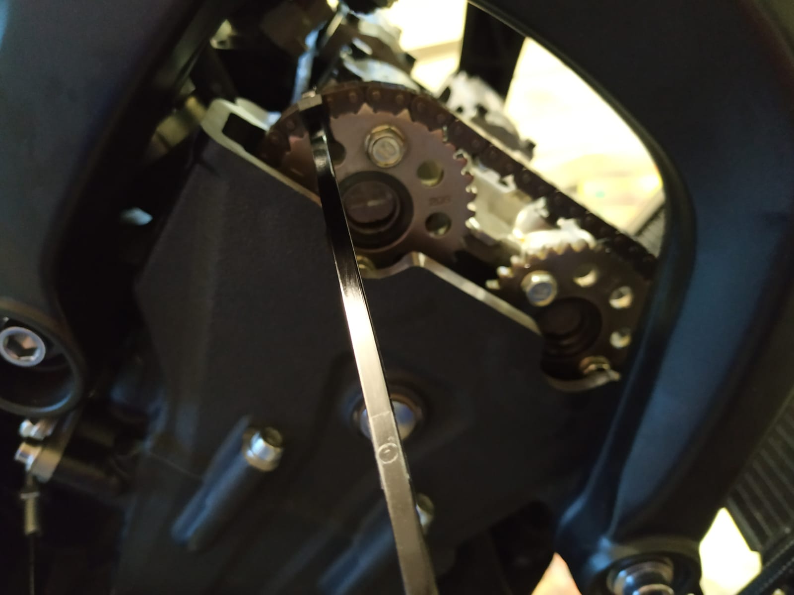 Steuerkette mit Draht sichern. (BilD)