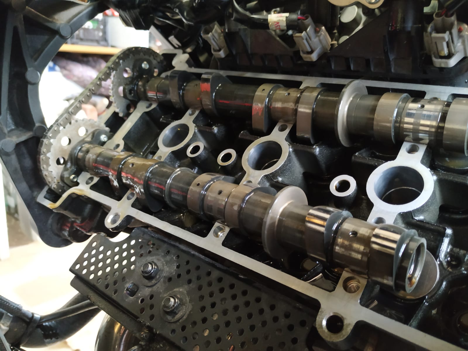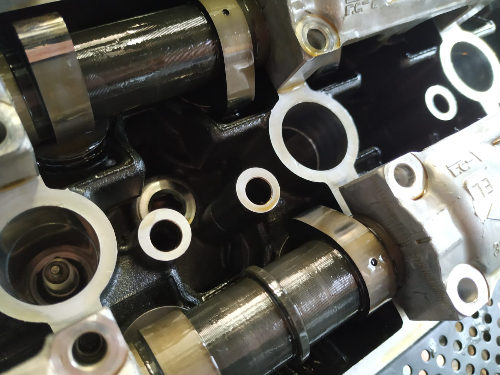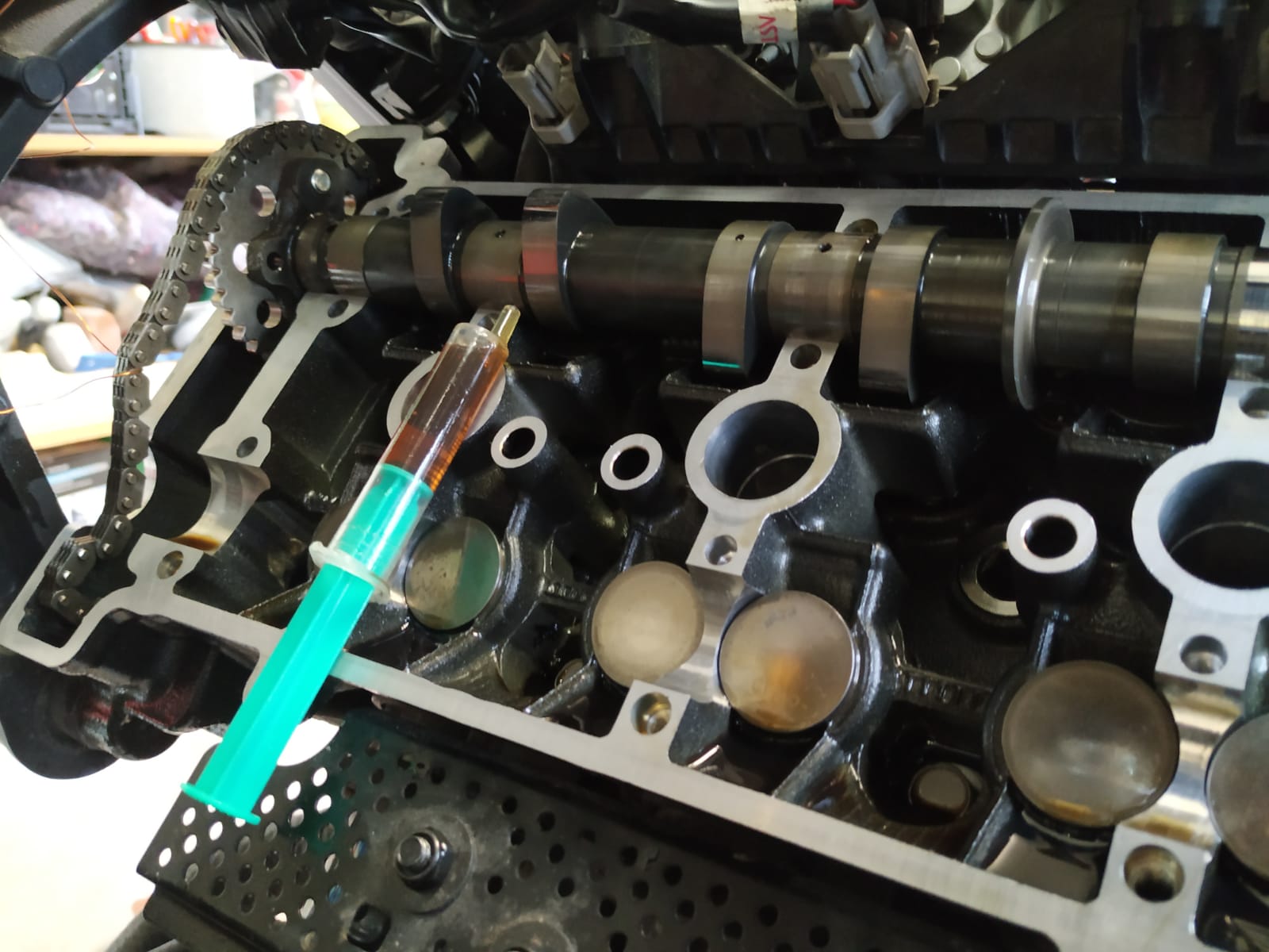 Nockenwellen wieder einlegen, schmieren mit Motoröl (Bild)