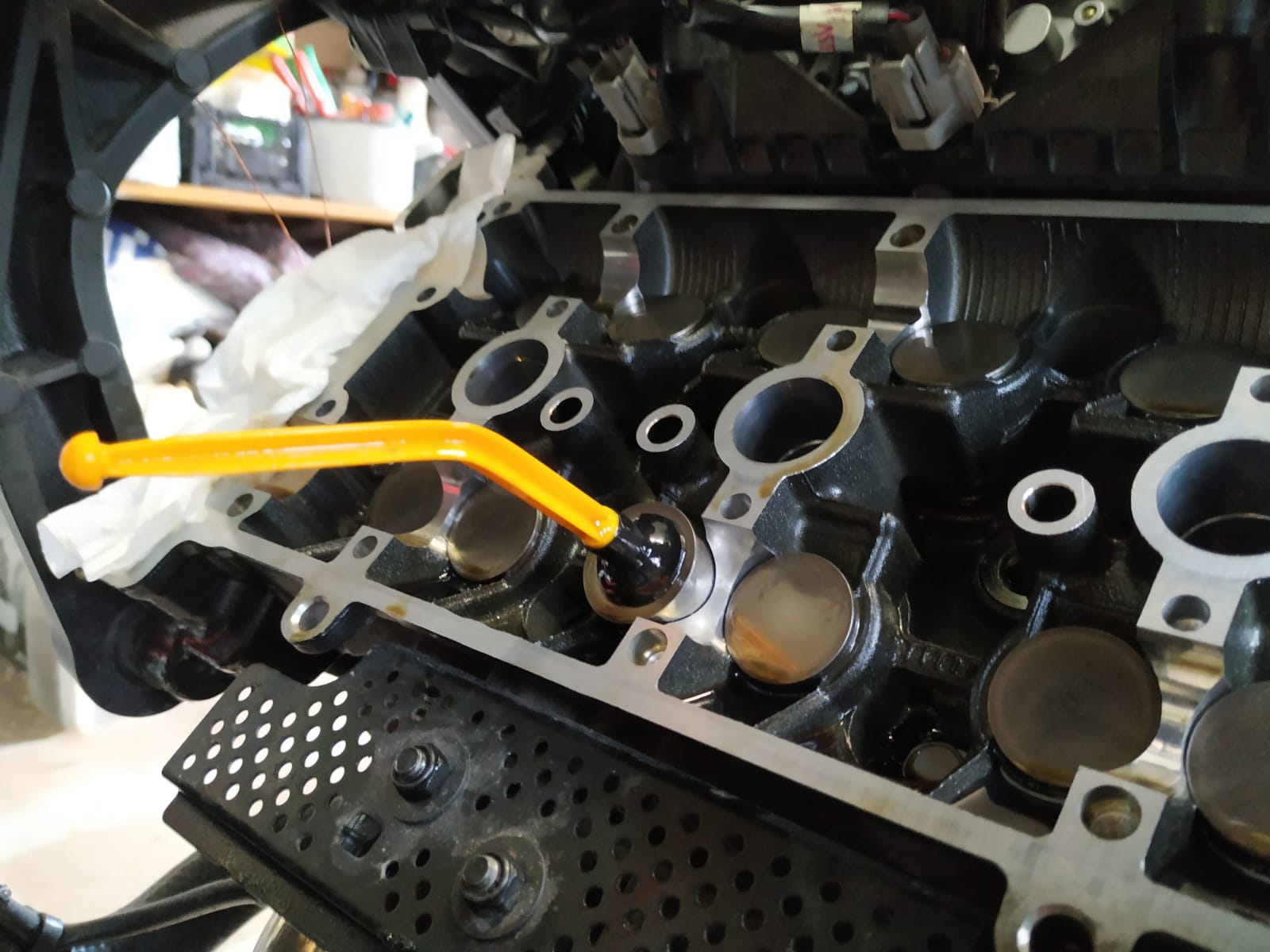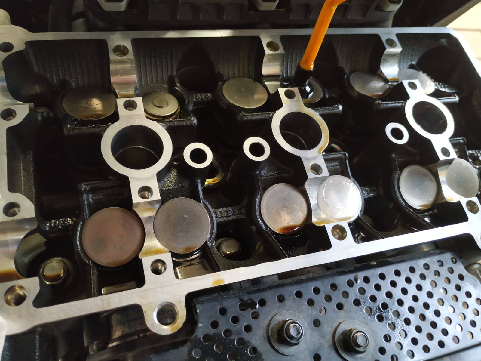 Tassenstößel da wo das Ventilspiel nicht gestimmt hat mit Spezialwerkzeug