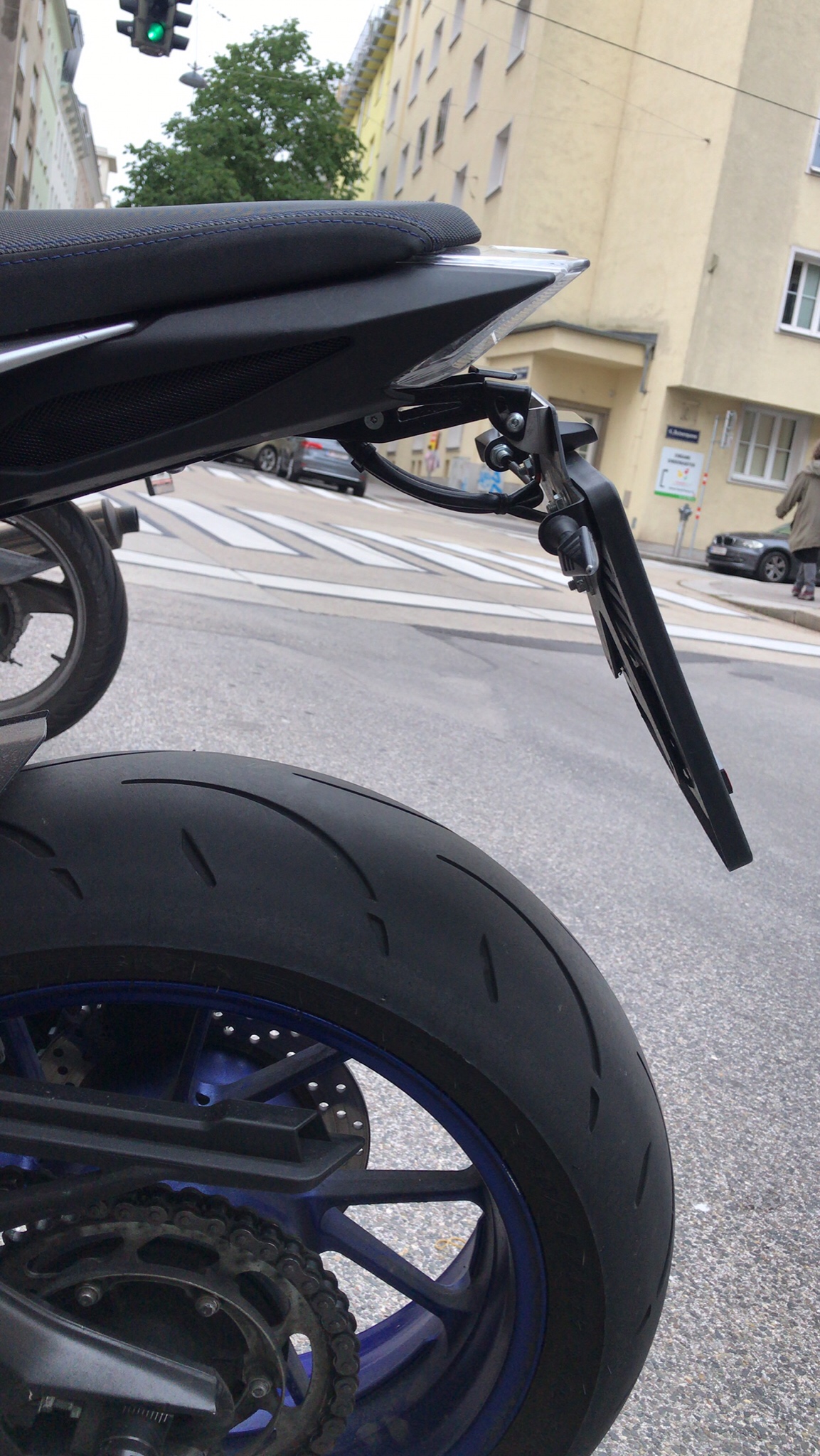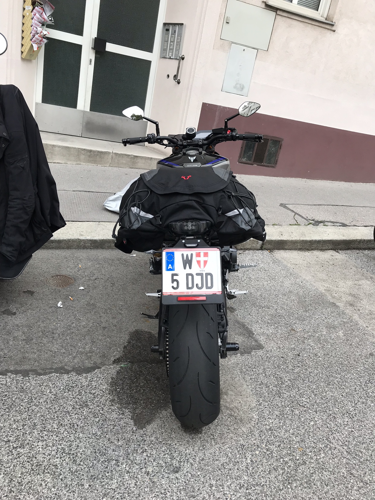 Vorne würde ich die Straps an den Beifahrer Fußrasten fixieren aber hinten hab ich nur den Kennzeichenhalter, der nicht sehr viel Druck standhalten würde, denke ich.