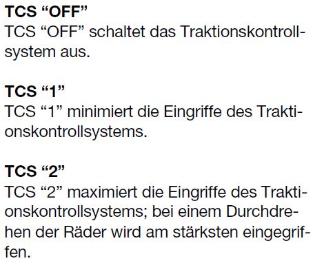 Ansonsten geht es mir wie Hoinzi. Obwohl kein Kind von Traurigkeit, habe ich von TCS 2 noch nichts gemerkt. Liegt aber vielleicht auch daran, dass die GT mein erstes Motorrad mit Traktionskontrolle ist. Bislang hatte ich die in der eigenen rechten Hand.