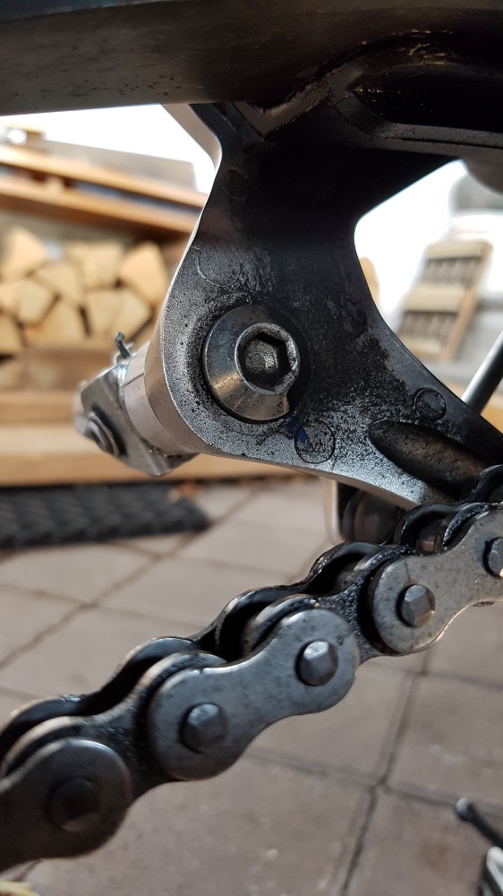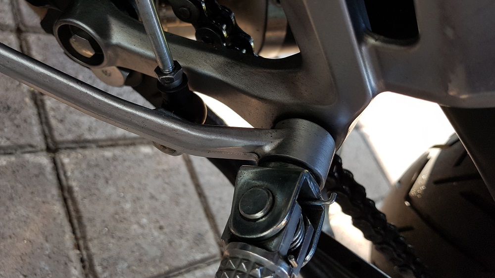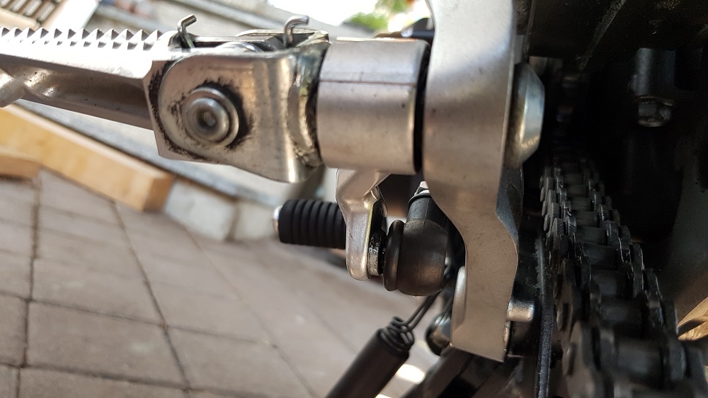 Bei mir ist die Schaltstange, also das Untere Gelenk mit dem Hebel vernietet. Quasi ein Stück. Um den Hebel weg zu bekommen, musst Du die Komplette Fußraste abschrauben.