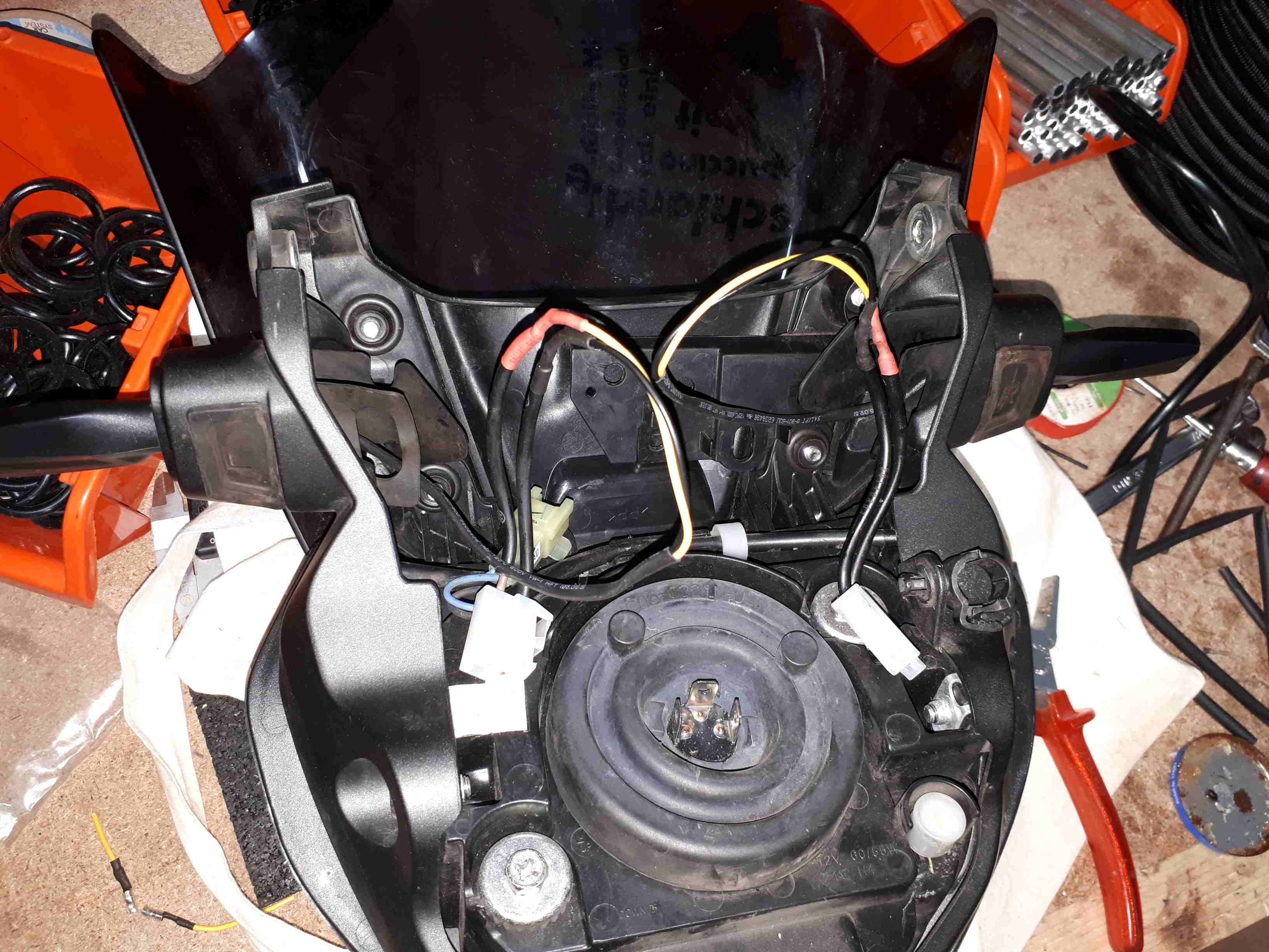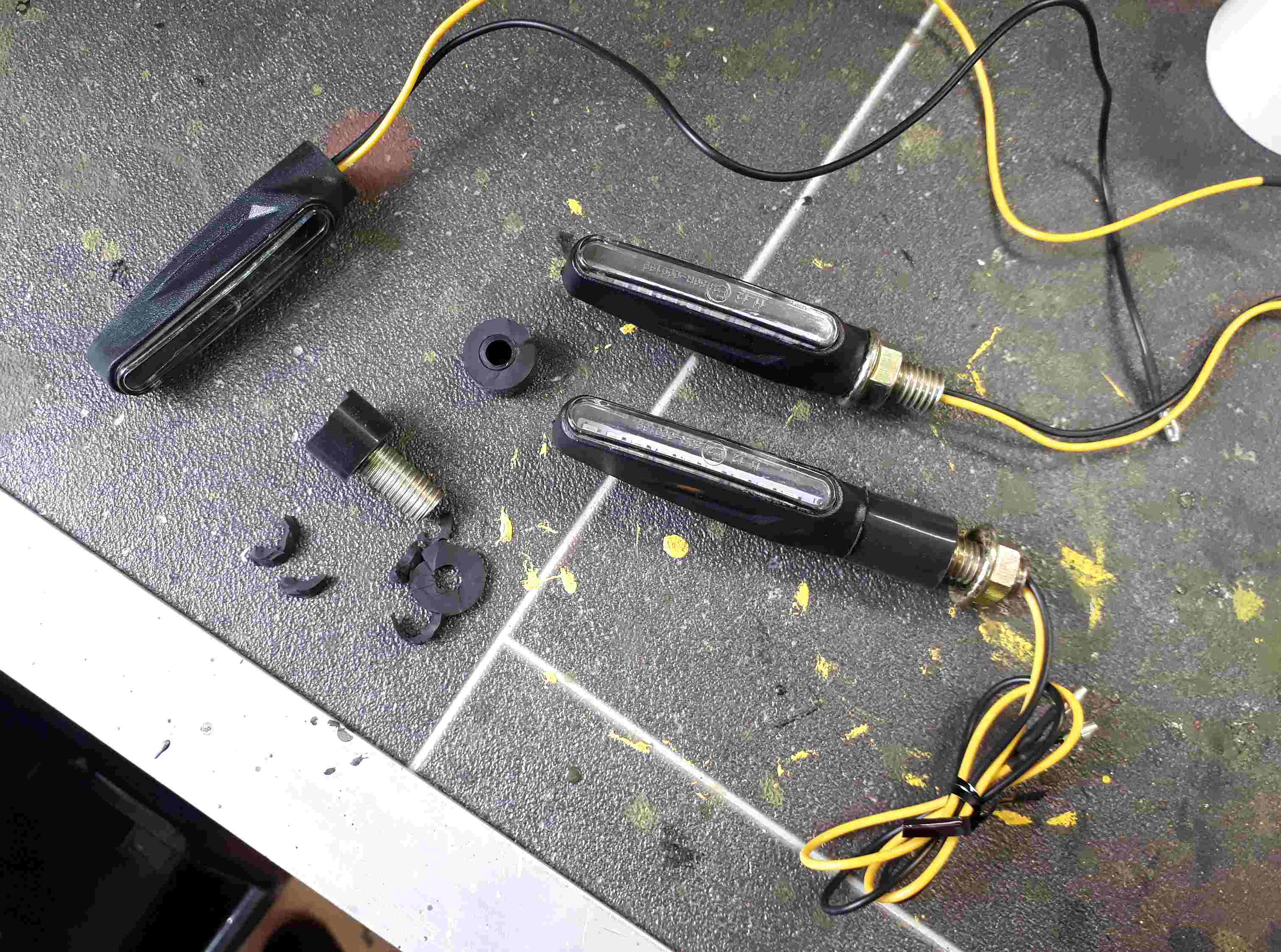 - Gummi zum Gehäuse einschneiden und abziehen. Stehbolzen freilegen und mit der Flex einkürzen. Blinkergehäuse innen vom Gummi cleanen und den gekürzten Stehbolzen einkleben. Stehbolzen rundrum im Gehäuse vergießen. Wir sparen uns mehrere cm und erhalten ein richtig sexy Lämpchen für "fast geschenkt".