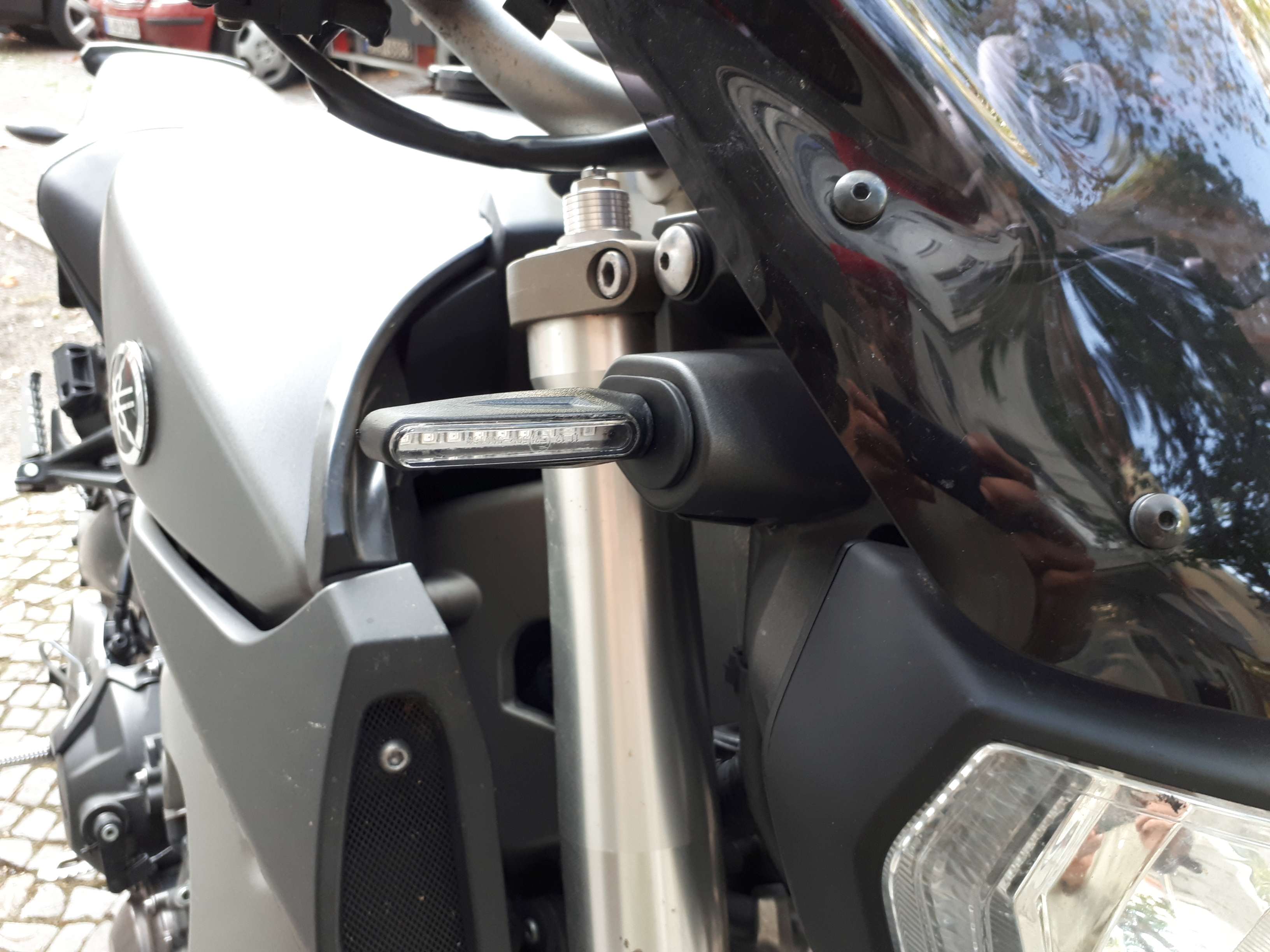 Die kleinen und sehr schicken LED Blinker für gerade mal 12€ mit E-Prüfzeichen habe ich mir bei Ebay bestellt. Der Gummiarm ist für mich relativ unnötig und macht die Gesamtoptik auch etwas platt. Daher habe ich die Blinker entsprechend eingekürzt, was mit etwas Geschick relativ unkompliziert funktioniert:
