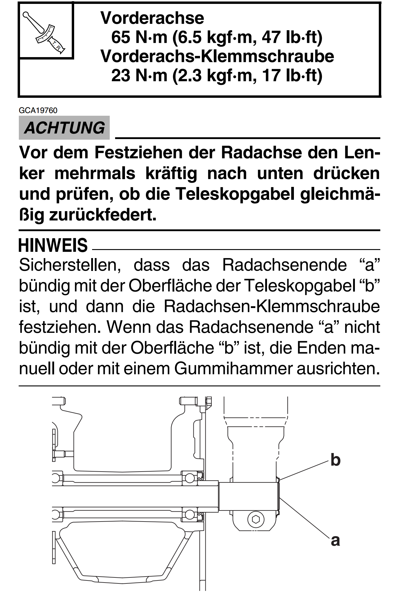 Macht Sinn, an die Lenkkopfmutter hatte ich auch schon gedacht. Aber dazu muss man ja dann auch die obere Gabelbrücke entfernen. Oder meinst du die Mutter oberhalb der Gabelbrücke?