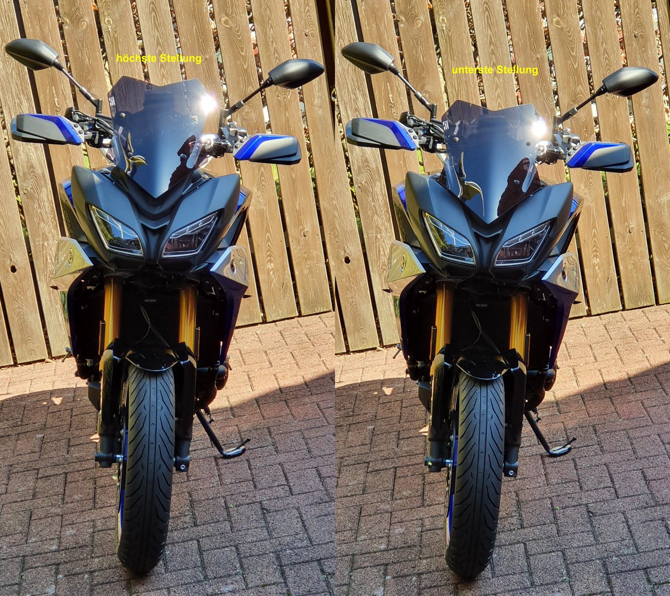 Ich hatte das Windschild durch Unterlegscheiben an den beiden unteren Befestigungen etwas "stumpfer" vom Winkel her gestellt.
