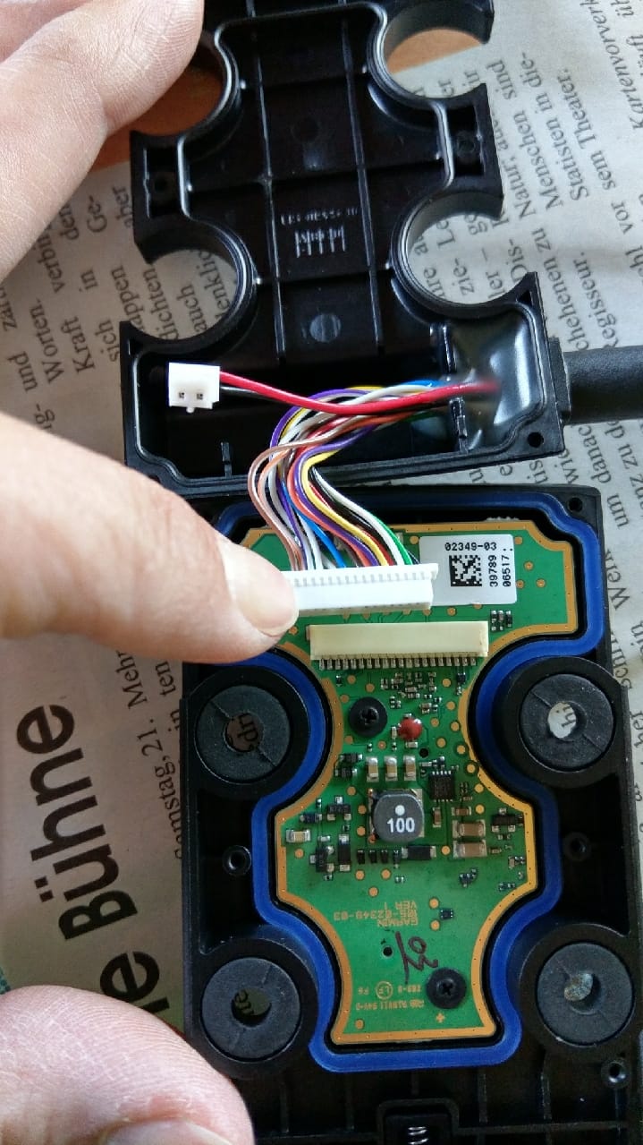 Hab Dir auch mal ein Bild des offenen Halters angehangen, wo du alle Kabel sehen kannst und auch wie das vergossen ist.