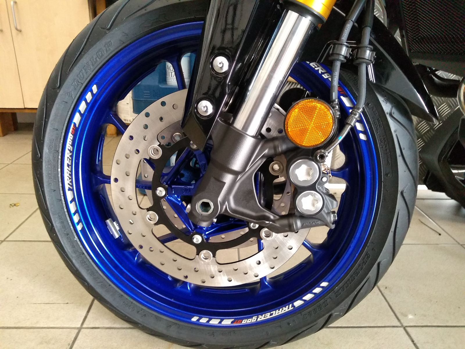 Die blauen Felgen sehen super aus, aber mir waren sie fast zu Blau und ich habe mich dazu entschieden das mit Felgenrandaufklebern etwas abzuschwächen.