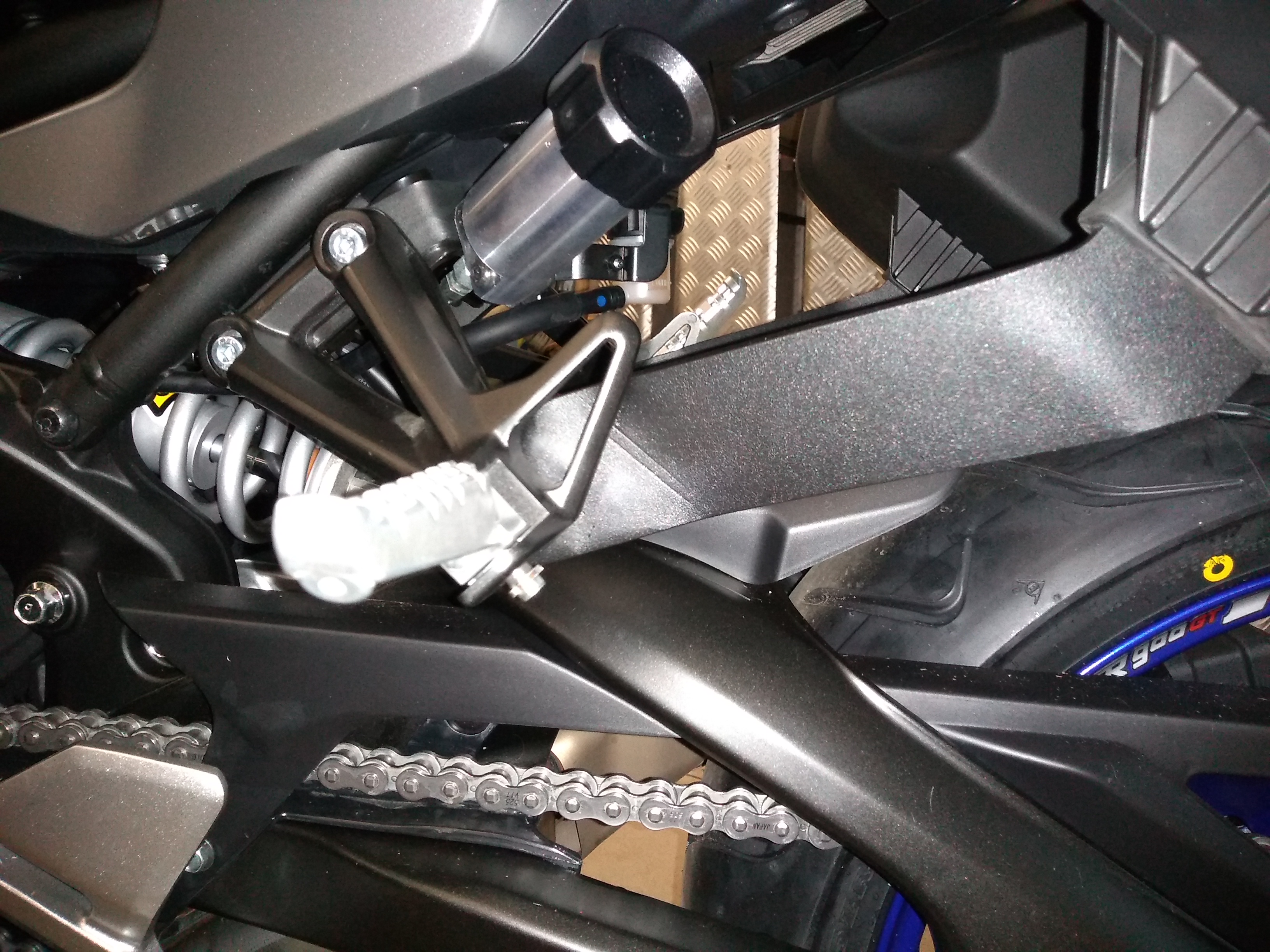 Das Problem mit den zu kurzen Fußrastenabständen vom Fahrer zur Soziusraste hat mir anfangs etwas Kopfzerbrechen bereitet, da ich sie nicht ganz wegmachen wollte zumal ja da auch die Koffer mit fixiert werden und ich evtl. ja auch mal in die Verlegenheit komme jemand mitnehmen zu müssen habe ich mir die Kofferhalter kurzerhand selbst angefertigt, diese sind den Soziusrasten der MT09/10 angepasst und dann zusammen mit denen angeschraubt, nun passt die Fußfreiheit beim auf den Ballen fahren, die Koffer können weiterhin genutzt werden und sollte mal jemand mitfahren wollen/müssen sind auch noch Rasten dran.