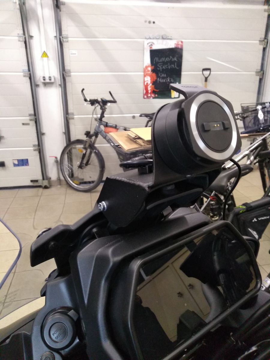 Da ich das Navi (TomTom Rider) nicht wie bei meinem letzten Moped am Lenker haben wollte weil mir da der Blick zuweit von der Straße abgewandt war habe ich mich für eine Lösung über dem Kombiinstrument entschieden, habe mir da aus 2mm Alu eine Halterung gebaut und diese an der Höhenverstellung der Scheibe angebracht (Idee kommt hier aus dem Forum, Danke dafür).