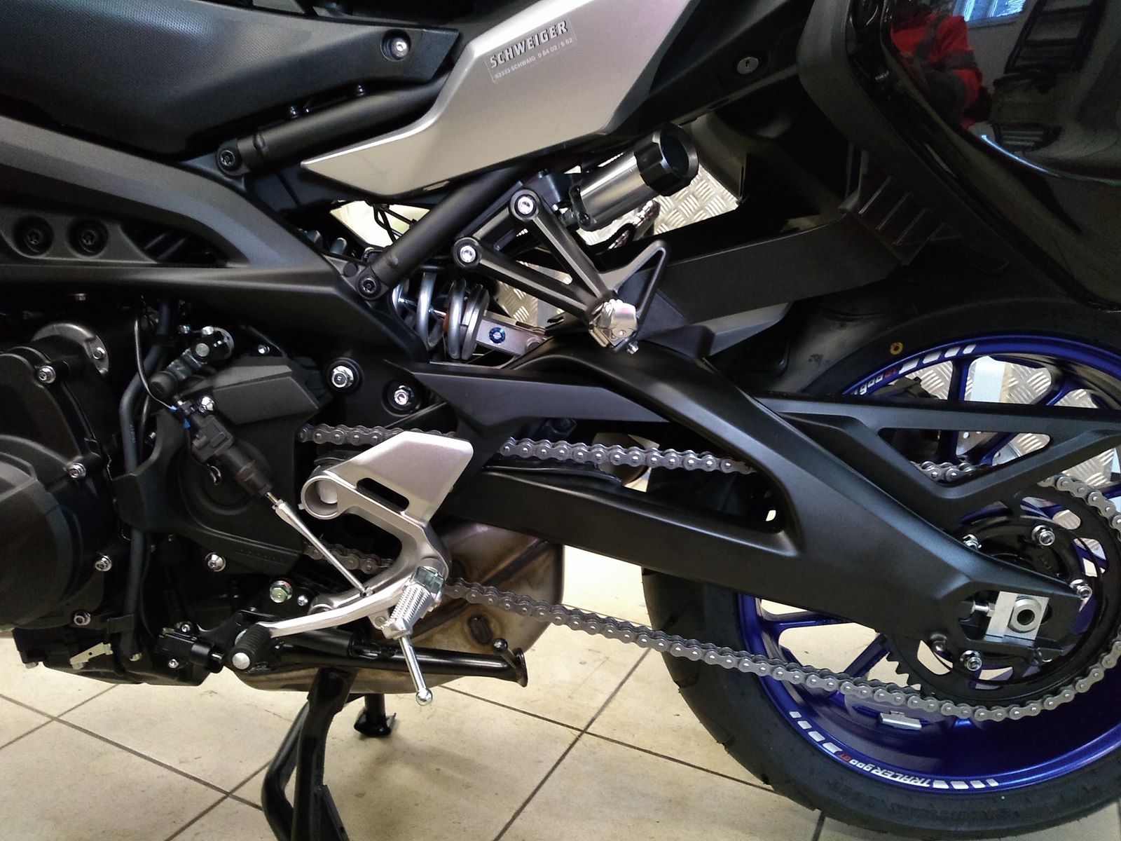Das Problem mit den zu kurzen Fußrastenabständen vom Fahrer zur Soziusraste hat mir anfangs etwas Kopfzerbrechen bereitet, da ich sie nicht ganz wegmachen wollte zumal ja da auch die Koffer mit fixiert werden und ich evtl. ja auch mal in die Verlegenheit komme jemand mitnehmen zu müssen habe ich mir die Kofferhalter kurzerhand selbst angefertigt, diese sind den Soziusrasten der MT09/10 angepasst und dann zusammen mit denen angeschraubt, nun passt die Fußfreiheit beim auf den Ballen fahren, die Koffer können weiterhin genutzt werden und sollte mal jemand mitfahren wollen/müssen sind auch noch Rasten dran.