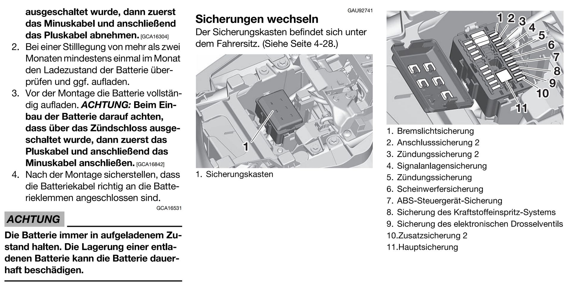 Auch wenn es mega peinlich ist, ich hatte die Batterie stehend und nicht liegend eingebaut. Ist glaube ich das erste Motorrad mit liegender Batterie. Für mich ist das Motorrad ja ganz neu, bin noch nicht einen Meter damit gefahren. Hatte die Seitenverkleidung vorne rechts und links demontiert und kann sagen, dass bei der Tracer 9 GT vorne kein Sicherungskasten ist.