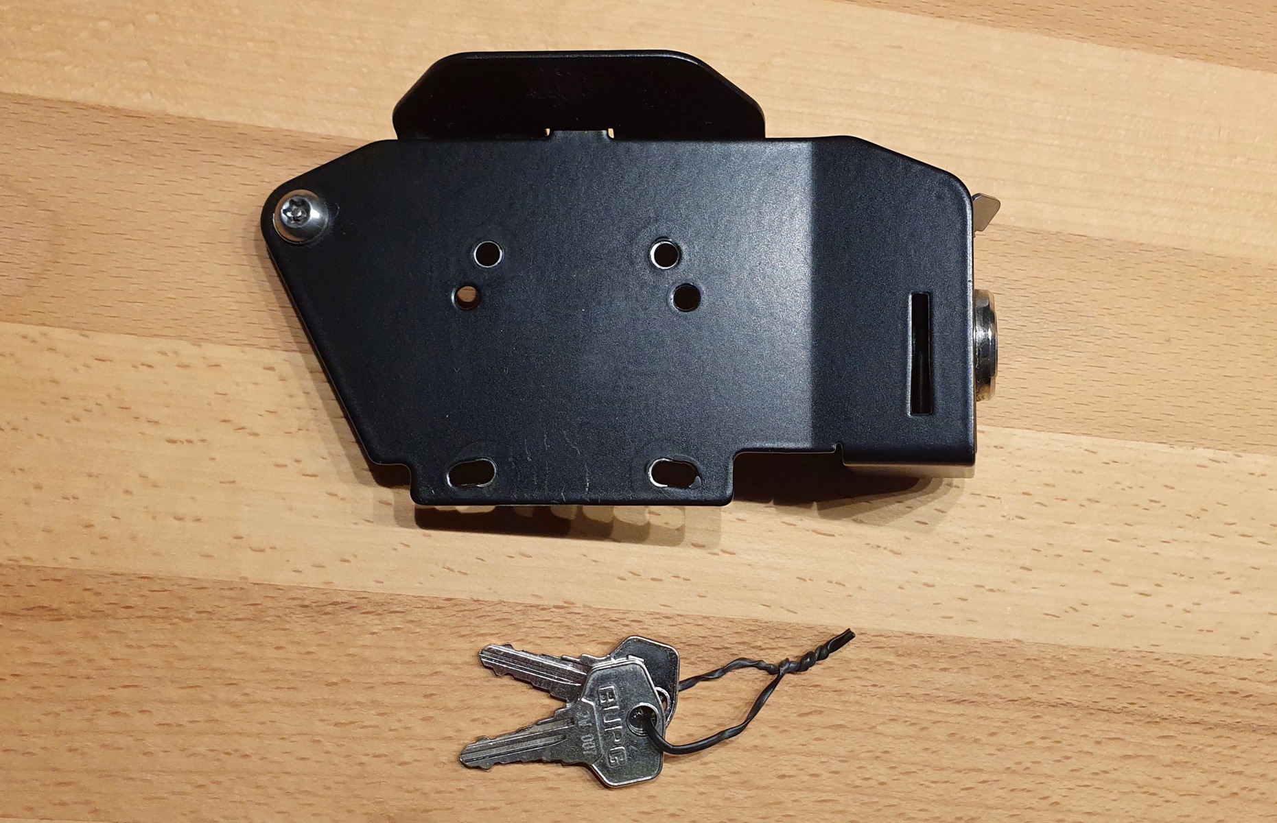 Das "Schloss" wird einfach zwischen der vorhandenen Aktivhalterung und der Ram-Mount-Kugelplatte montiert, fertig.