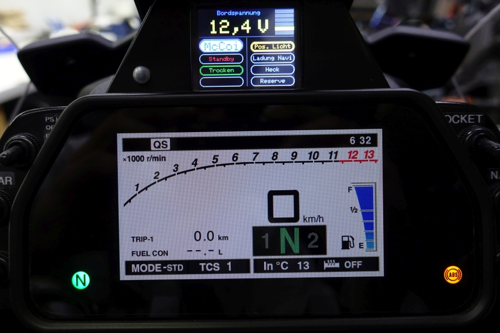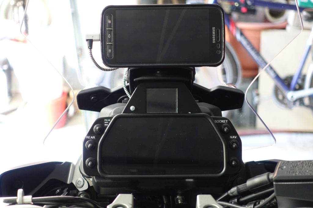 Unter Anderem sollte eine Halterung für das Smartphone mit Navi-Software, sowie ein McCoi Kettenöler verbaut werden.
