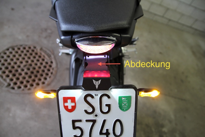 Direkt aufs Kennzeichen nicht wg. ECE, aber unterhalb ginge auch…Rückstrahler hinten: