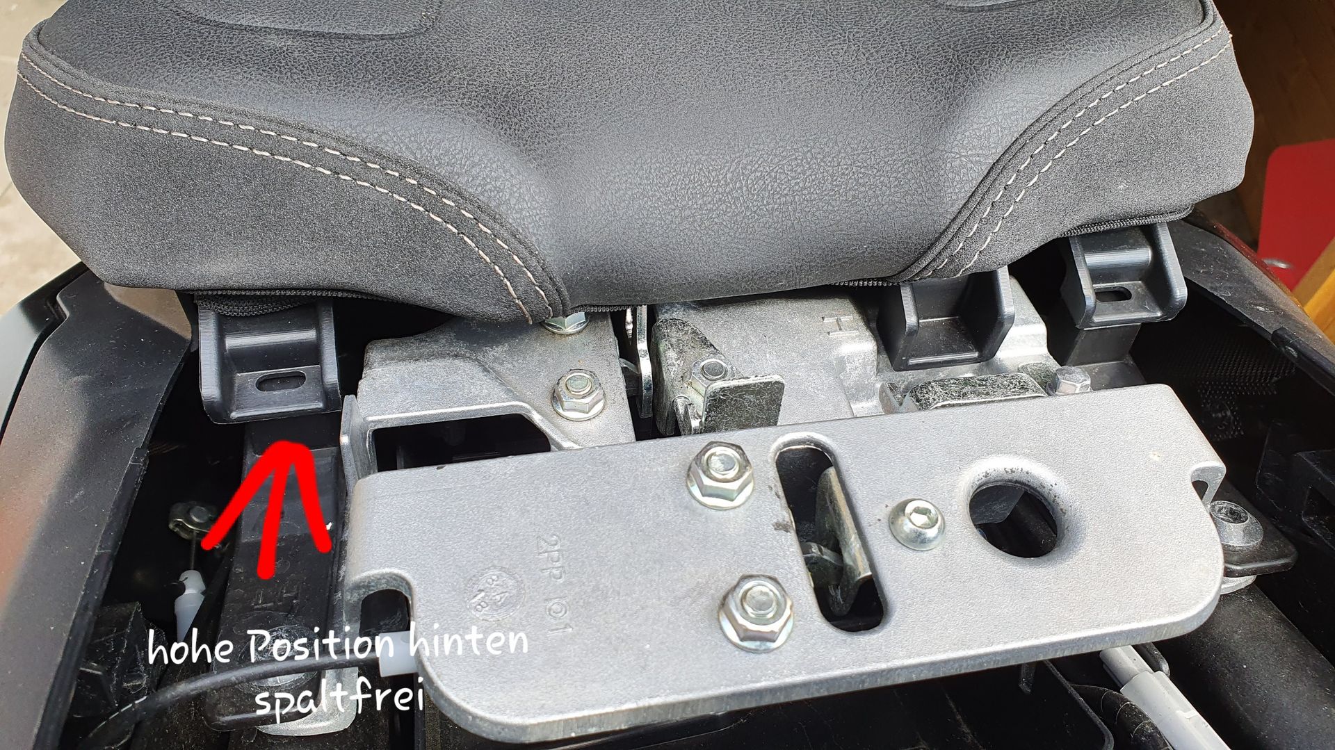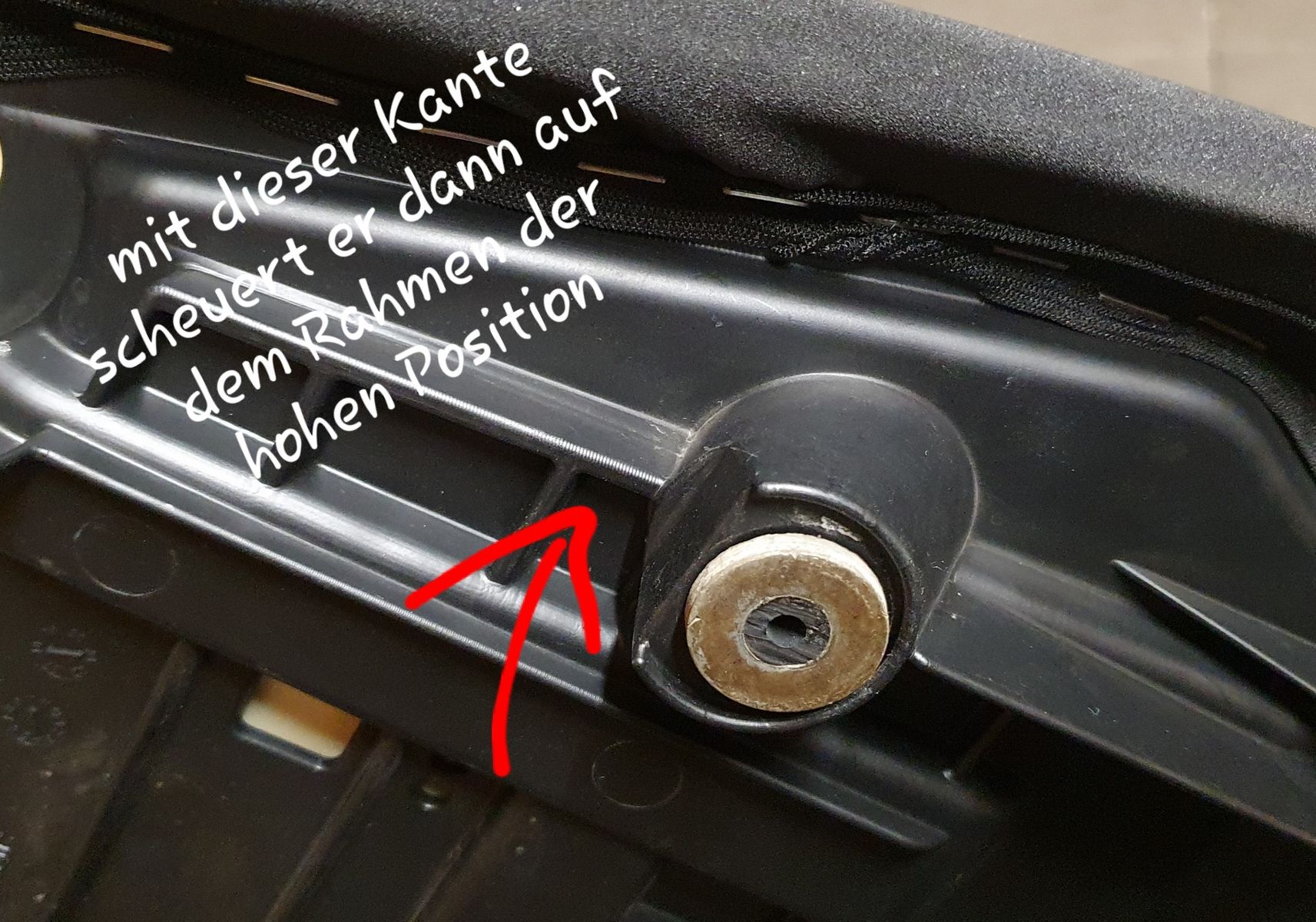 So hier nochmals Detail Bilder. Meine Sitzbank liegt hinten auf diesen kleinen Gummi Nupsis auf. Dazu noch eine Totale vom Rahmen.