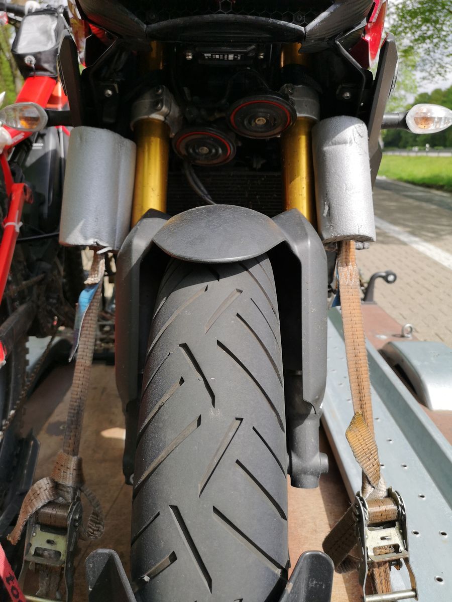 Wo würdet ihr die Spanngurte an der RN43 platzieren, vorne ist klar schön an die Federbeine oben, aber hinten bin ich ein wenig zwiegespalten (Lösung an der Schwinge, Soziusfußrasten oder die Verstrebung vom Rahmen an der die Soziusfußrasten befestigt sind). Vielleicht gibts ja wen mit Erfahrung, der mir da weiterhelfen kann.