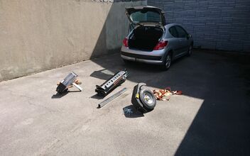 So, Montag kamen drei größere und schwerere Päckchen und heute ist er schon angemeldet. Heute hab ich mal alles zusammengebaut, Mopete drauf gefahren und verzurrt und hab beim ersten Mal ca. 30 Minuten gebraucht. Ich denke es wird sich auf die Hälfte reduzieren. Sehr geil. Mit ein wenig Glück wird er am Wochenende ausgetestet.