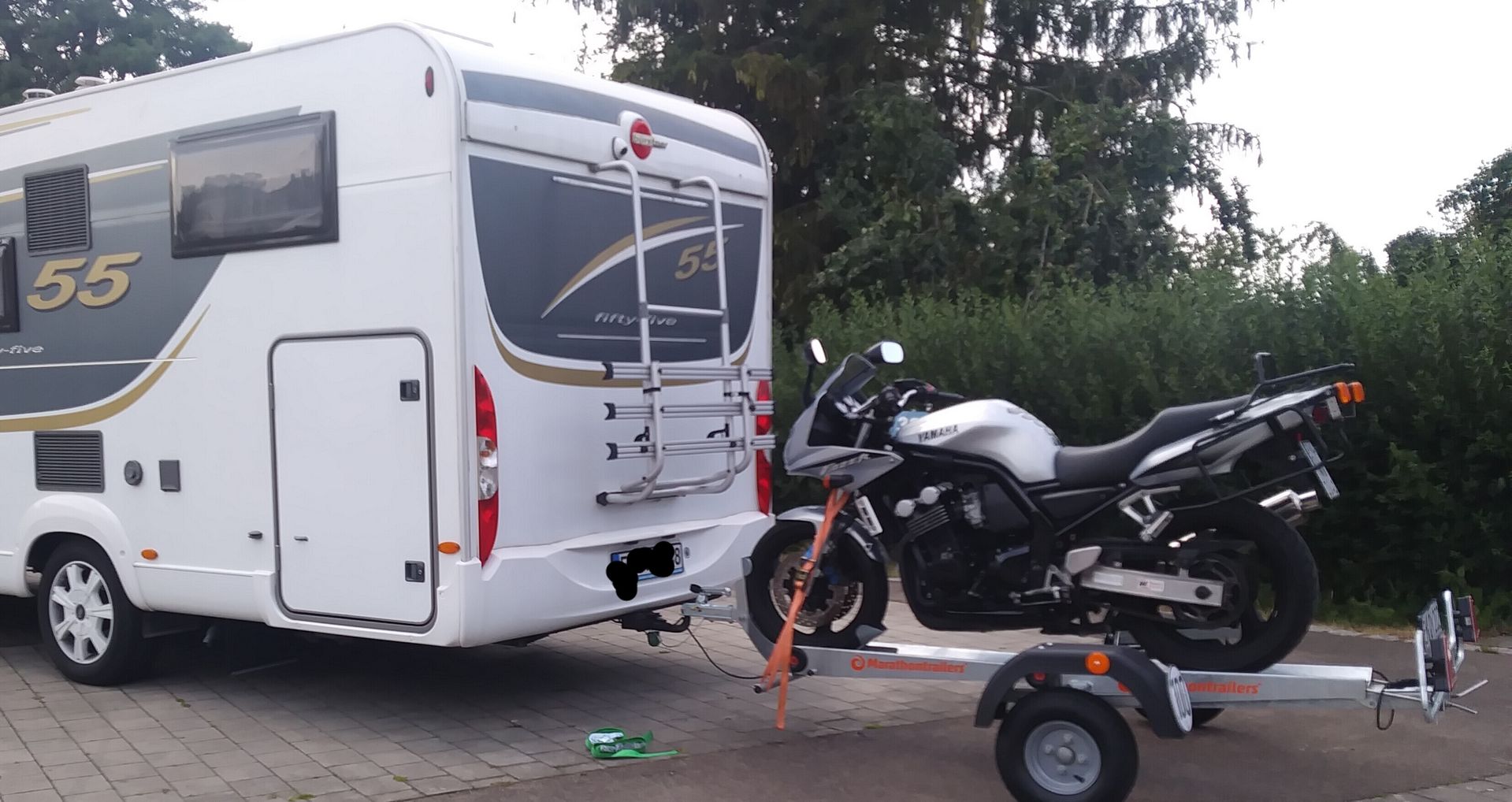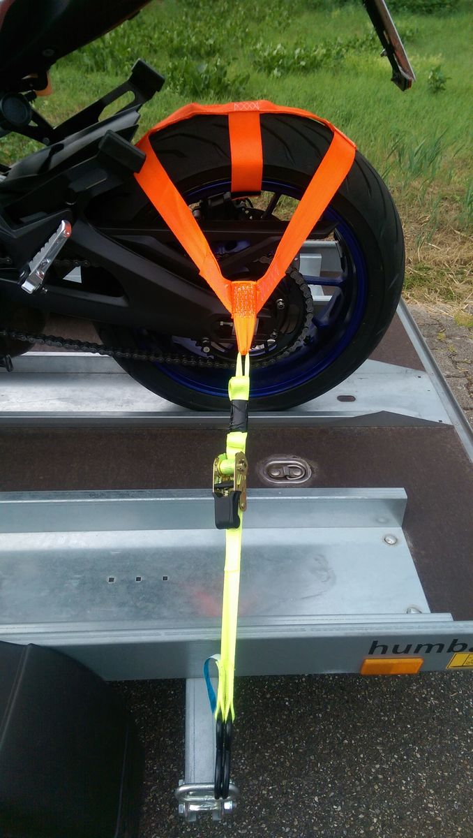 auf den Hänger einfach den ersten Gang rein und langsam hochfahren. Passt perfekt und man ist in 10min fertig. Leider muss ich mich immer zwischen der Fazer oder Tracer entscheiden.