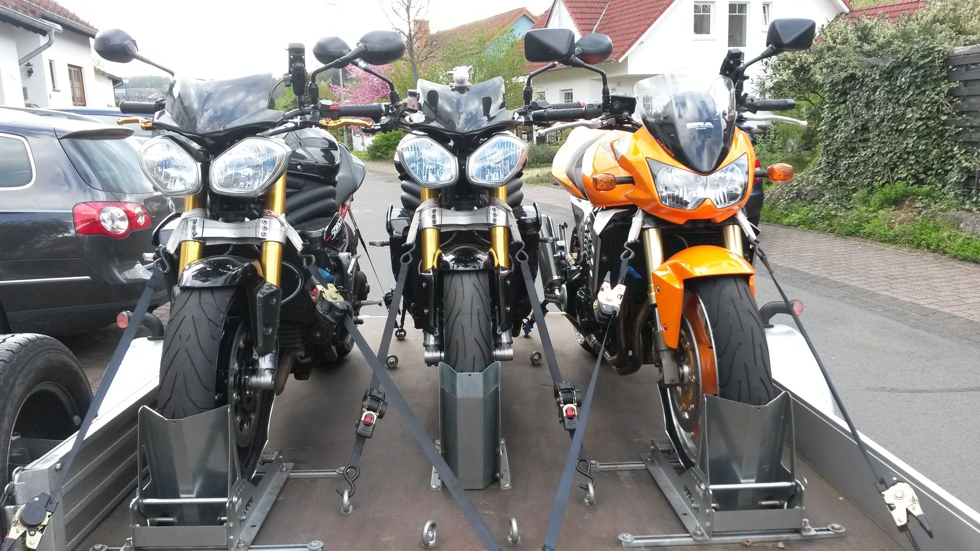 ich habe einen Pferdeanhänger den ich für den Transport einer 900er Tracer (RN57) verwenden will. Für den Transport gibt es am Boden Halteschlaufen.