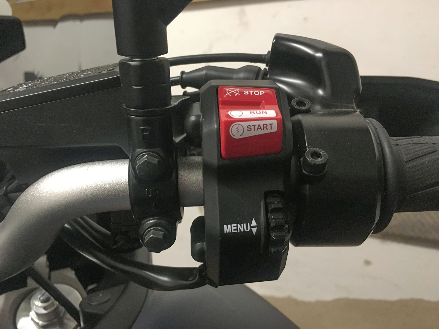 Genauso gibt es Probleme mit dem Bremsflüssigkeitsbehälter wenn man den Lenker etwas weiter Richtung Fahrer kippt. Irgendwann stößt dann der Behälter an den Lenker wegen der Kröpfung.