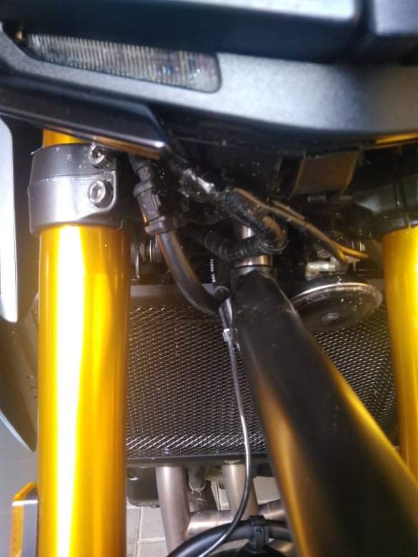 ich hatte noch den Frontständer für meine GSR 600 rumstehen. Der hatte an den Aufnahmen zwei mit Gummischläuchen bezogene "Finger", die unter der Vordergabel platziert wurden. Aufgrung der bei der MT09 radial verschraubten Bremssättel funktionierte dies nicht mehr bzw. war extrem wackelig. Um nun nicht nur das Vorderrad anheben zu können sondern auch ausbauen zu können, habe ich diese Aufnahmen modifiziert. Der Grundgedanke war, dass ich ja das Bike unter der Gabel anheben muss, damit ich die Vorderrad-Achse rausziehen kann. Ich habe also die beiden o.g. "Finger" entfernt und jeweils einen, an anderer Position, wieder angeschweißt. Auf diesen habe ich dann eine Kunststoff-Kugel ( 2 Stück 3.- Euro im Baumarkt) angebracht. Diese sollen von unten in die Öffnungen der Gabel eingeführt werden. Ich habe diese Kugeln dann noch ein wenig abgeschliffen, so dass sie ein wenig tiefer in die Öffnungen eingeführt werden können. Vorher muss man am in Fahrtrichtung linken Gabelholm die Klemmschraube rausschrauben, sonst liegt die Kugel auf dieser auf. Anbei ein paar Bilder des Umbaus.....Funktioniert einwandfrei (vielleicht werde ich die Kugeln noch mal neu "machen"). Das die eine Aufnahme etwas schräg sitzt ist dem schlechten Einschweißen der Hülse im Ständer durch den Hersteller geschuldet....ich hab für beide Ständer (vorne und hinten) zusammen an die 40.- Euro bezahlt.
