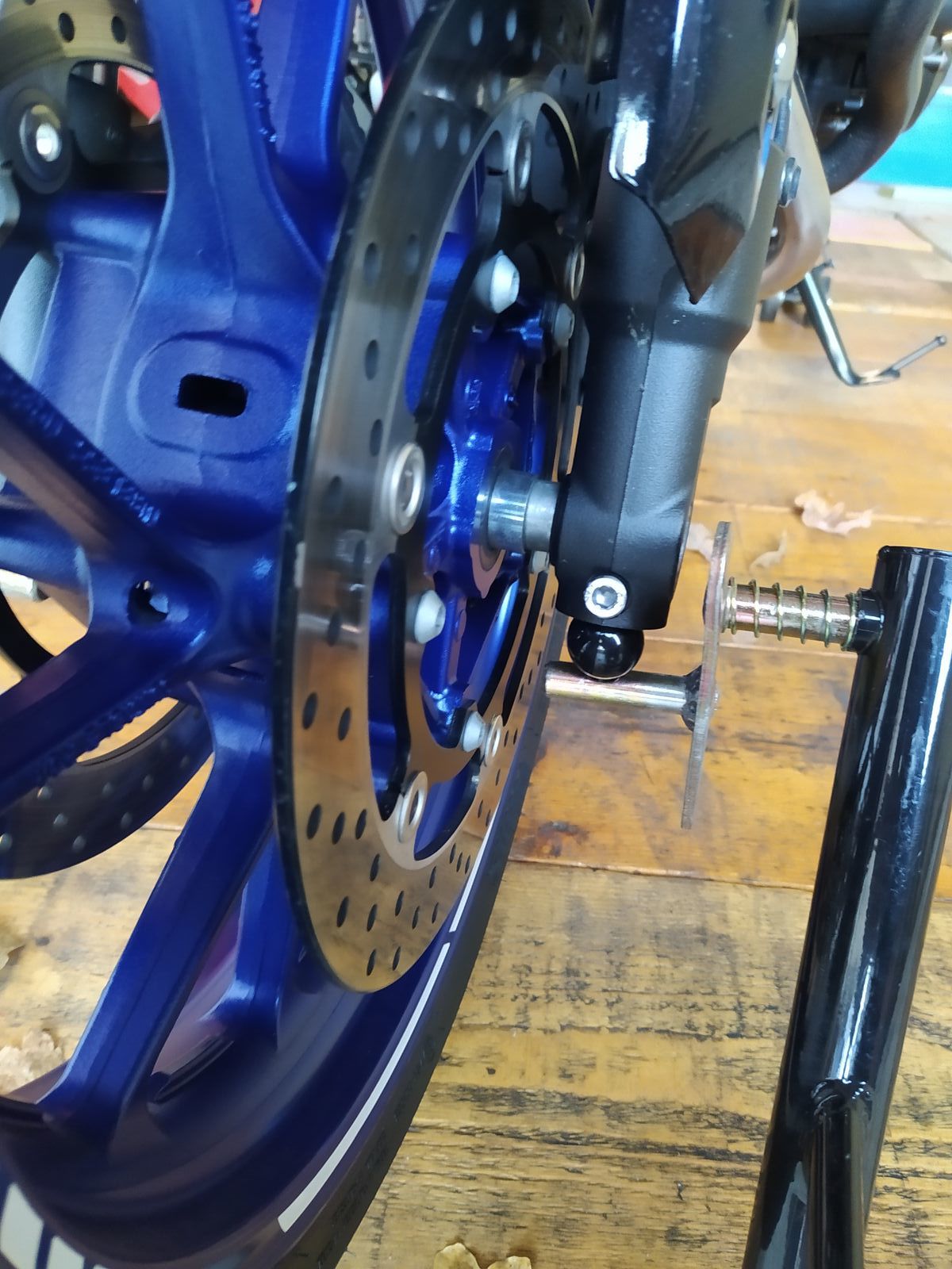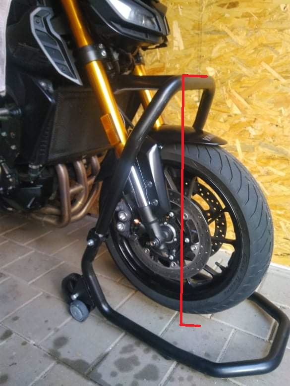 Hab jetzt mal genauer Bilder gemacht vom Motea V4 Lenkkopfheber mit Original Dorn und meinen Selbst gemachten . Auf einen Bild sind die Räder die ich eingebaut habe Traglast halten sie locker auch wenn recht wenig angegeben . Beim Original dorn kann man auch noch kleine aluringe Zwischenlegen so kommt das Motorrad noch höher, aber mit den Rädern hat man bei komplett durchgesteckter Gabel 5mm bodenabstand