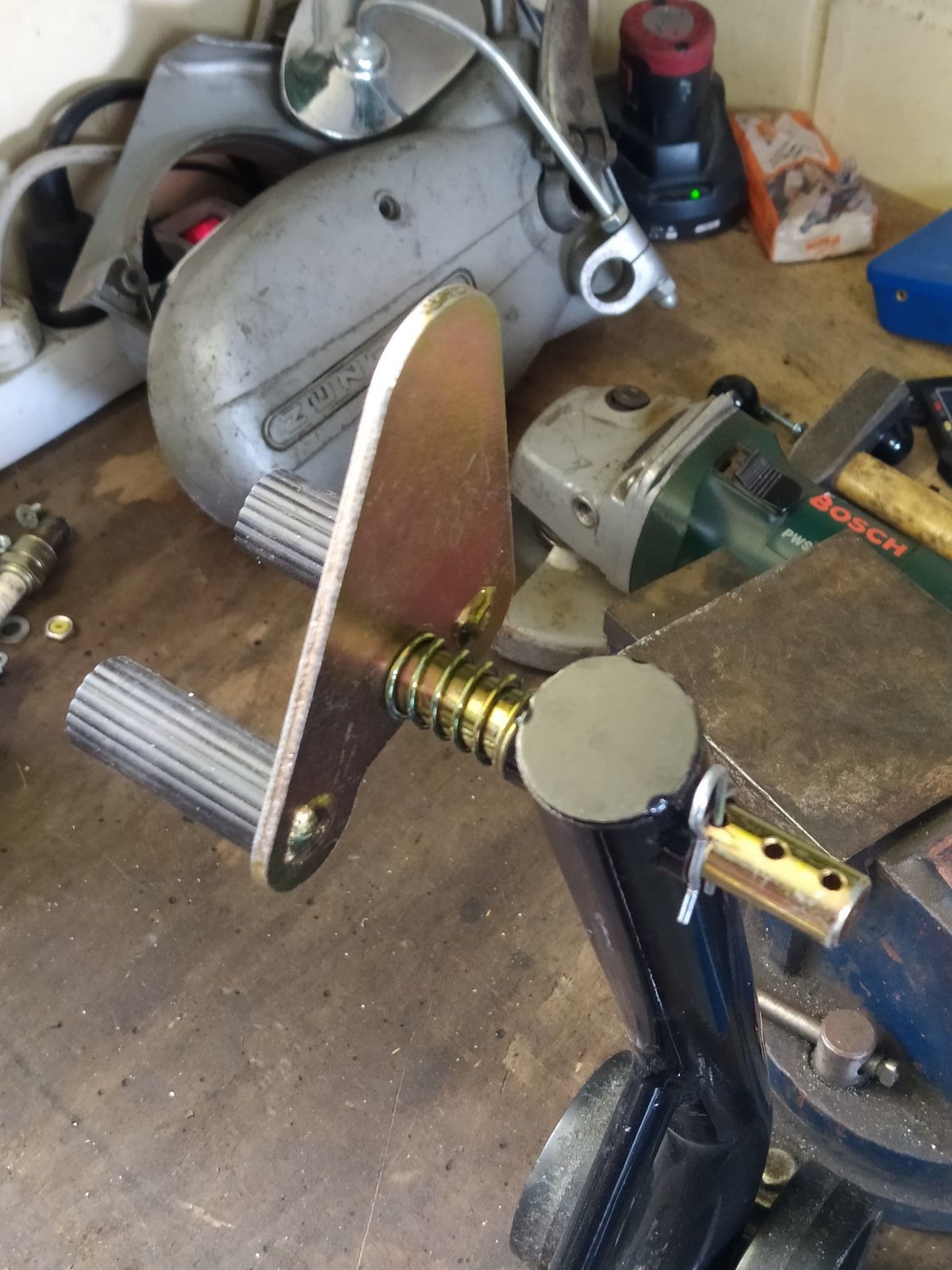 Deine Arbeit in allen Ehren - aber es gibt für kleines Geld (~ 20 Euro) Heber mit Zapfen, die in die Öffnung an der Unterseite der Gabel greifen. Stabil und günstig obendrein. Z.B. hier: https://www.ricambiweiss.com/d…aender-frontstaender.html