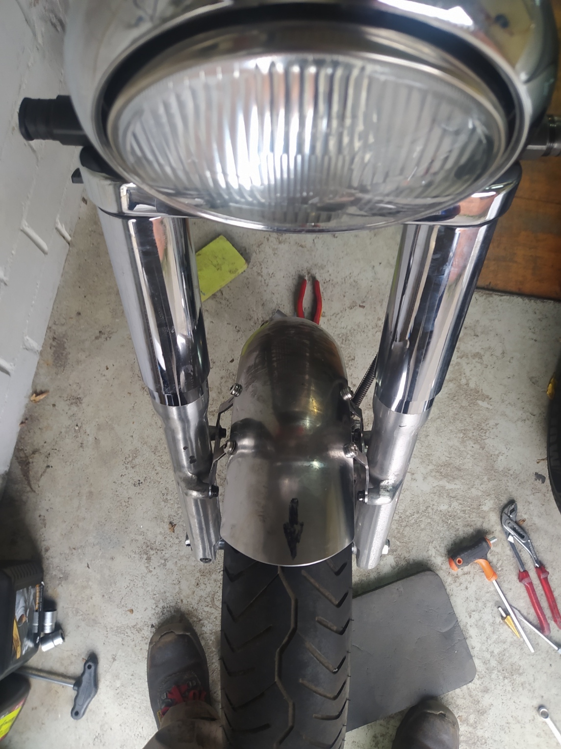 Der Umbau wird zwar ähnlich zum ersten, aber keine 100% Kopie. Farblich dachte ich an ein Resedagrün....habe ich an einer Brixton Cromwell 1200 gesehen und gefällt mir an dieser außerordentlich gut....mal schauen.