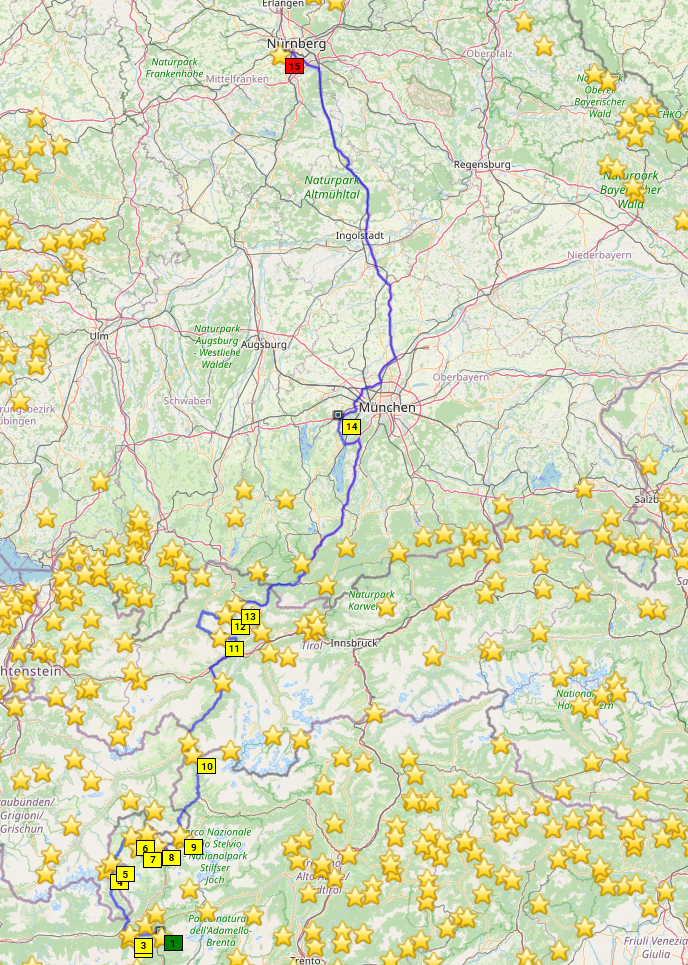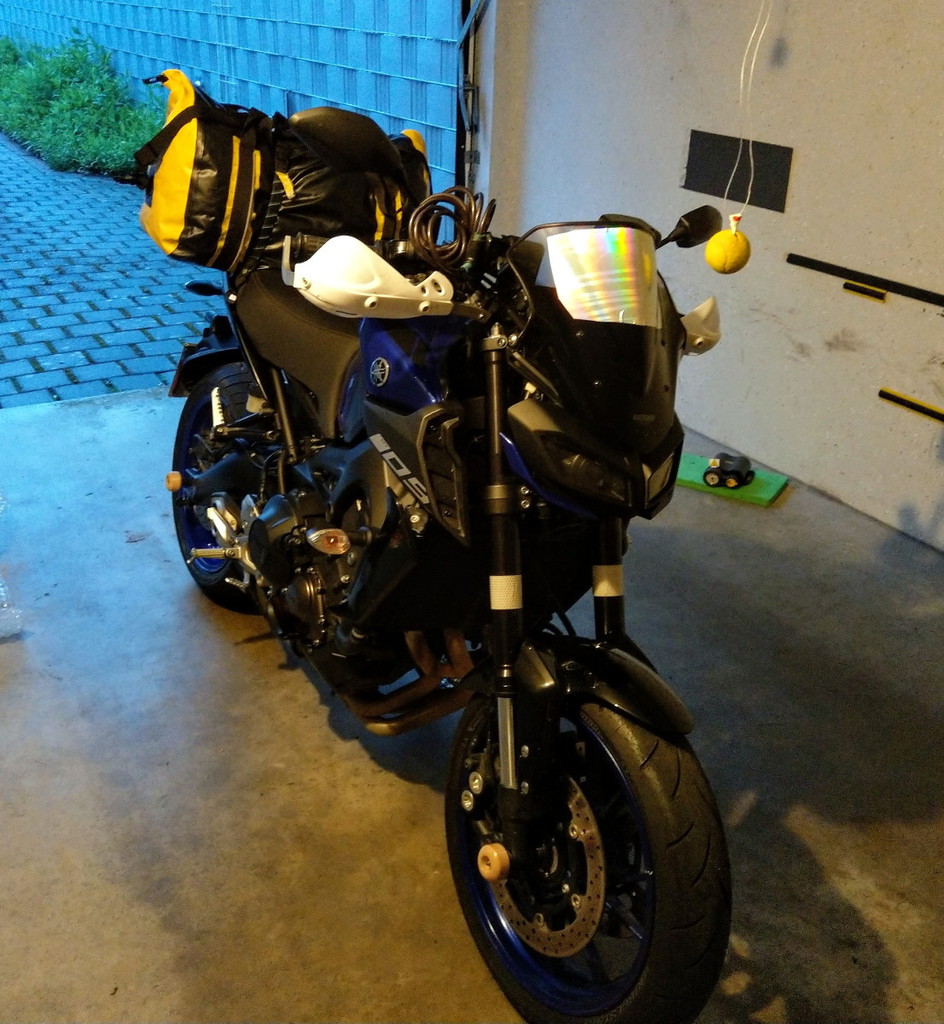 Die Vorbereitung zog sich durch diverse Dienstleisterpannen (Felgenverkäufer, Lackierer, Reifenmonteur) und meine Schusseligkeit im Umgang mit dem Topcaseträger leider bis zum Vorabend der Abreise hin, was echt nicht schön war. Und dann sprang auch noch kurzfristig wegen Krankheit eine sehr interessierte Mitreisewillige ab.