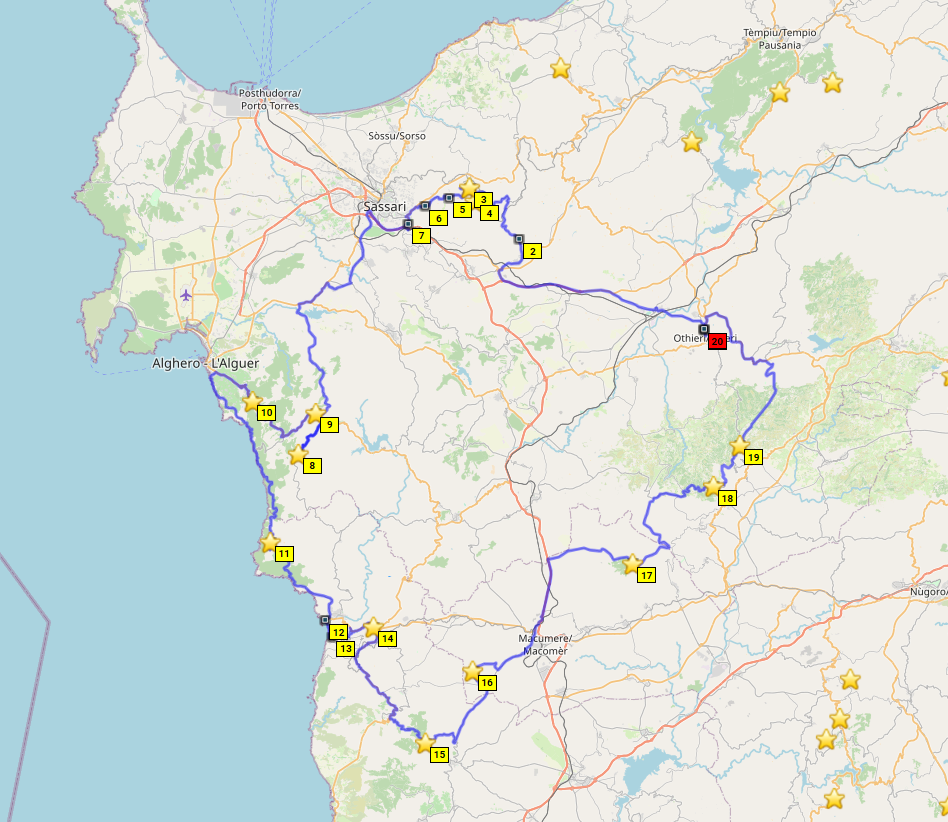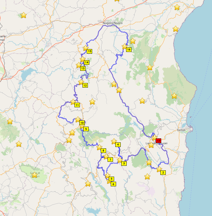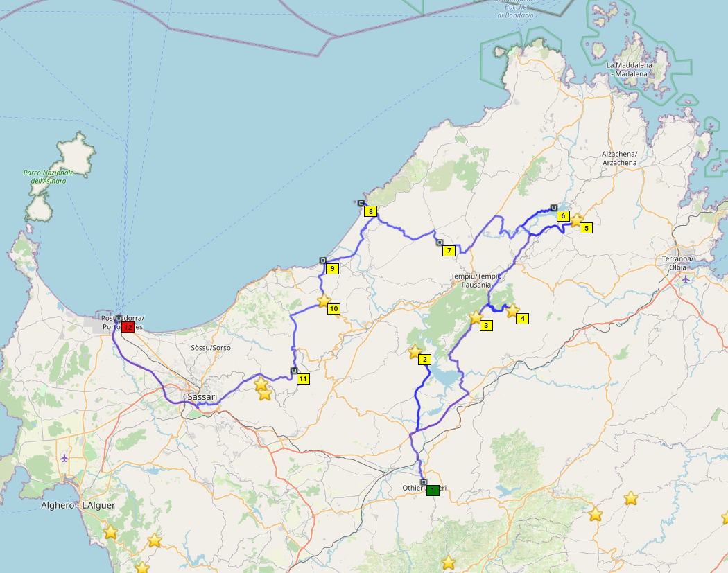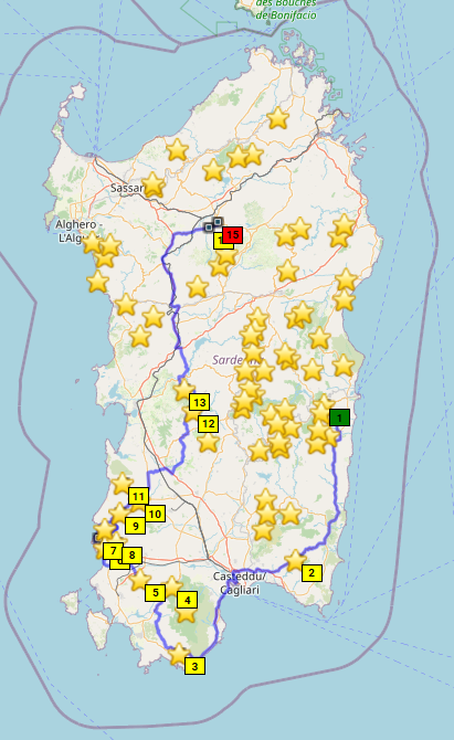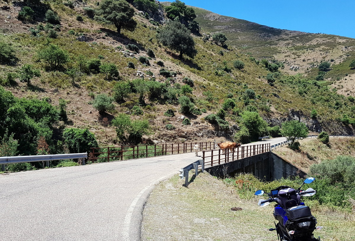 Sardinien! Liegt da im Mittelmeer rum und ich war noch nie da, dabei habe ich seit 14 Jahren einen Motorradführerschein. Ein unhaltbarer Zustand! Die Eckpunkte der Reiseplanung ergeben sich schnell. Ich will den Passknacker Landespreis in Sardinien, also alle 65 Passknackerpunkte in Sardinien besuchen, das sind Höhenübergänge und hohe Sackgassen. Die Routenplanung ergibt 6 Fahrtage in Sardinien mit 2 Basislagern (Fewo Elini im Osten und BNB Ozieri im Norden). Ich nehme mein eigenes Motorrad, statt zu fliegen und zu mieten. Beide Fähren wähle nachts, und den nördlichsten Hafen in Italien (Genua). Ich plane je 2 Tage für An- und Abreise auf Achse über "schön", schließlich habe ich Urlaubstage extra, keine Anhängerkupplung am Auto, und mein Auto frisst auch mehr Sprit als zwei Motorräder zusammen. Achso, die Grundidee ist wieder mal 1. Motorrad fahren, 2. Motorrad fahren und 3. MOTORRAD FAHREN!! Kultur, Kulinarik und Badespaß sind was für eine andere Gelegenheit. Unterkünfte so günstig wie möglich mit eigenem Bad und gewissen hygienischen Ansprüchen. Fähren mit Kabine.
