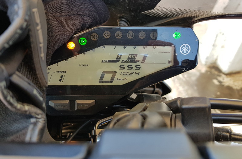 Für diese Reise möchte ich die MT-09 nutzen, denn hier ist grenzenloser Kurvenspaß im Ausland gefragt. Leider steht die MT-09 gerade auf frischen Sportreifen, und zumindest mit dem hinteren brauche ich es gar nicht erst zu versuchen, bis Sardinien oder gar wieder zurück zu kommen. Da ich schon länger einen zweiten Radsatz für MT-09 will schlage ich zu, kaufe eine gelbe Felge, lasse sie blau lackieren, und lasse dort einen bereits über den Winter günstig organisierten CRA3 aufziehen. Jawoll, Mischbereifung - mache ich immer so, hat mit dem Pilot Power 3 auch einwandfrei funktioniert. Das sorgt dafür, dass beide Reifen ungefähr gleichzeitig hinüber sind, wodurch man nur halb so oft zum Reifenhändler muss (VH, VH statt H, V, H, VH). Ich wollte eigentlich wieder mit Topcase auf der MT-09 fahren, aber ein komplexes Einzelteil meines Spezial-Topcaseträgers ließ sich einfach nicht auffinden und auch nicht anderweitig besorgen. Dann habe ich meinen treuen Tankrucksack als Hecktasche probiert, bewährt auf diversen Kanaren-Trips, das reicht aber nicht für die Bandbreite an Kleidung, die man so braucht, wenn man mit dem Motorrad über die Alpen will: 5° in der Schweiz bis 30° in Sardinien. Und so wurde es wieder die gute alte Packrolle, die eigentlich zu groß ist. Damit sie nicht beidseitig schlapp von der Sitzbank runterhängt, kamen Soziusgriffe ans Heck und eine maßgeschneiderte Holzplatte in die Packrolle. Beides nicht ideal, aber funktional. Die MT-09 trägt noch die erste Kette und hat 17500 km gelaufen. Das ist verdächtig lange für meine Verhältnisse, sieht aber noch gut aus. Ich wollte aber mal eine kürzere Übersetzung probieren, also kam ein neues Ritzel drauf - mit freundlicher Unterstützung des Dorfschmieds.