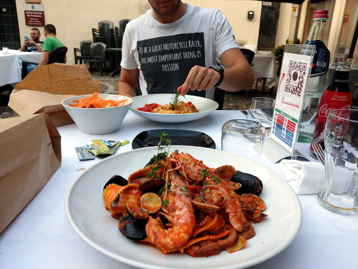 Dann wieder in den Tunnel rein und mit Autobahnen, aber ohne Maut zur Unterkunft. So gleitet man elegant durch den Berufsverkehr und wundert sich, warum es hier eigentlich so wenig Ampeln gibt - ich vermisse die Scheißdinger aber auch überhaupt nicht. Kreisverkehre mit halbwegs aufmerksamen Verkehrsteilnehmern sind in allem überlegen, und Motorradfahrer kriege in Italien 'ne Extrawurst.