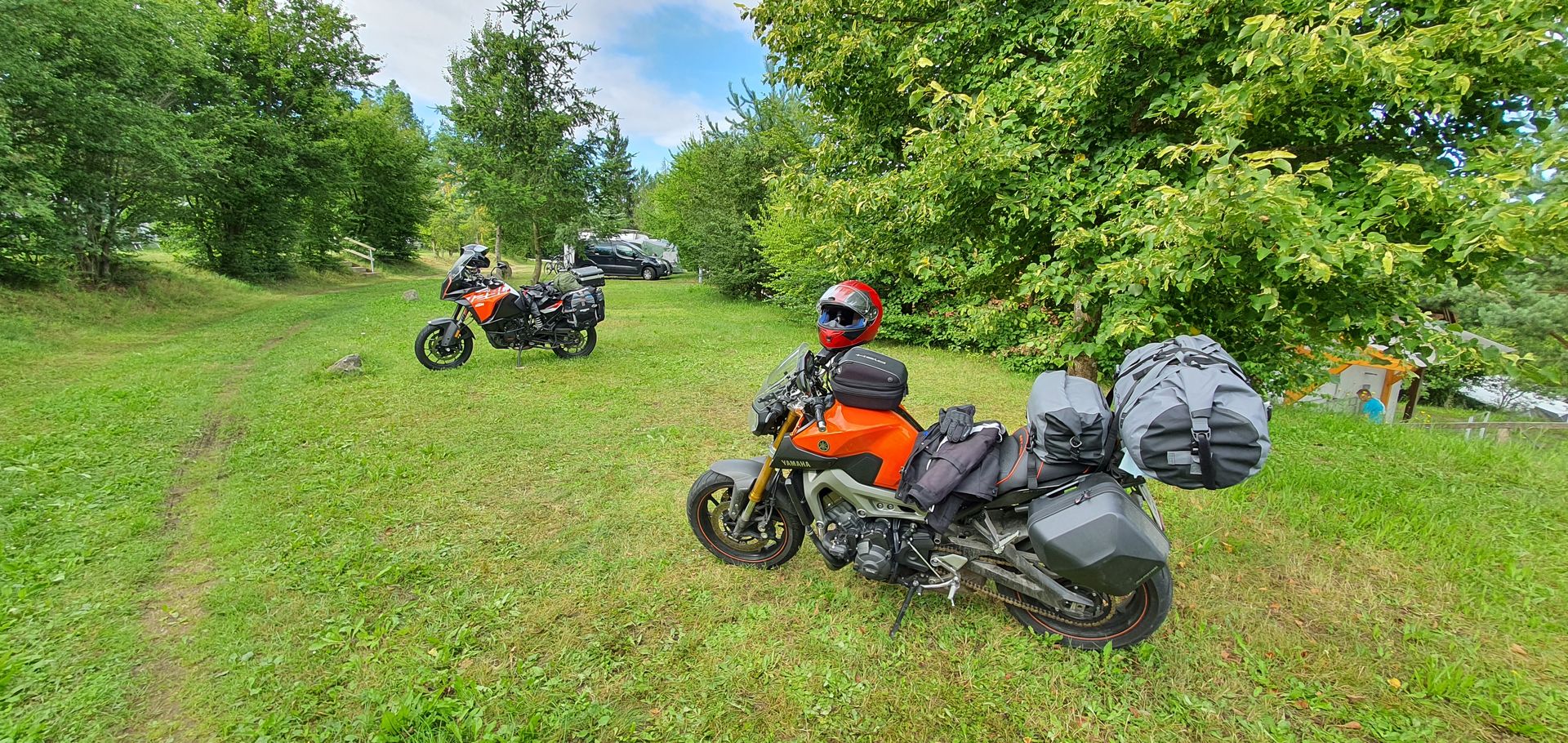 Ich hatte 32kg Gepäck dabei, wovon allerdings 12kg Koffer schon mit eingerechnet sind. Ich hab den Luftdruck gemäß Handbuch angepasst, Federvorspannung hinten erhöht, Dämpfer straffer gestellt. Das hatte alles nur homöopathische Wirkung. Ohne Gepäck wirkt Tracer 900 GT in dem Geschwindigkeitsbereich etwas nervös, läuft aber gut.
