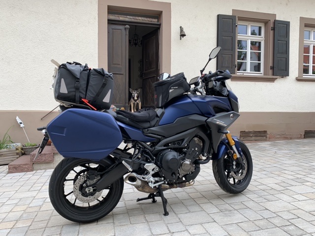 Ich hatte 32kg Gepäck dabei, wovon allerdings 12kg Koffer schon mit eingerechnet sind. Ich hab den Luftdruck gemäß Handbuch angepasst, Federvorspannung hinten erhöht, Dämpfer straffer gestellt. Das hatte alles nur homöopathische Wirkung. Ohne Gepäck wirkt Tracer 900 GT in dem Geschwindigkeitsbereich etwas nervös, läuft aber gut.